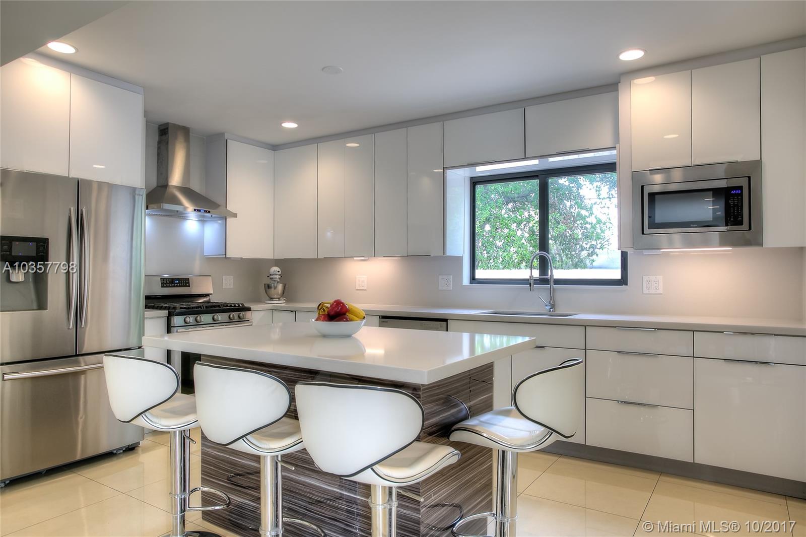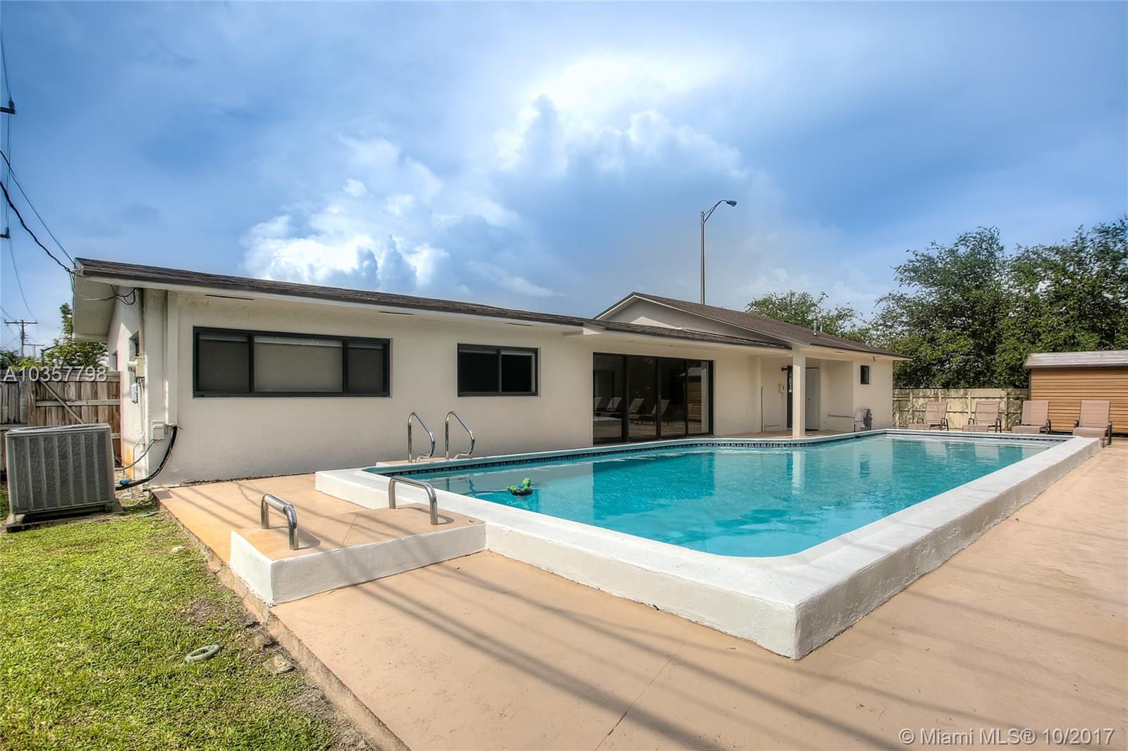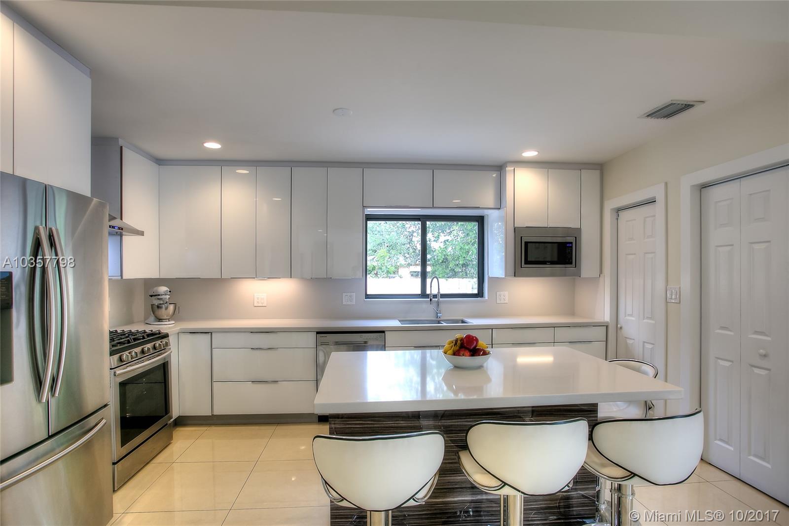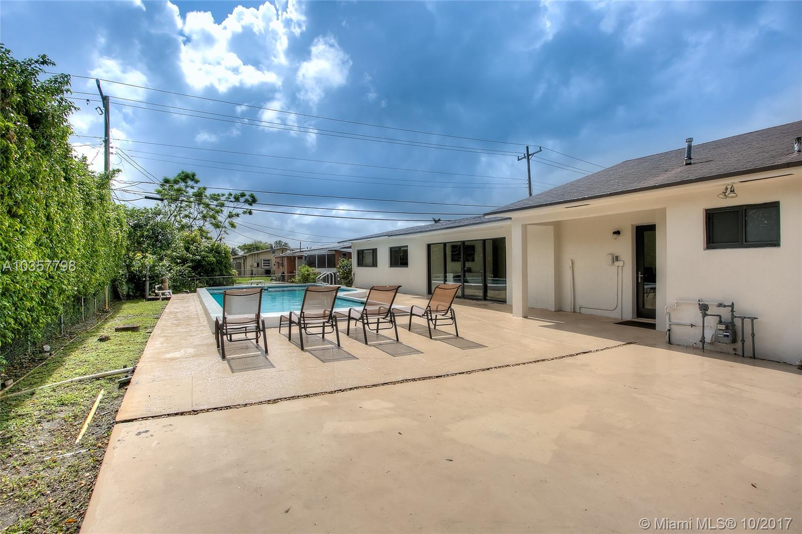 Gorgeous 4Bed/3Bath recently renovated corner pool home, situated in Palm Springs, one of the best West Hialeah areas, unincorporated Miami-Dade county. This home features modern kitchen with quartz counters-tops, center island with wine cooler, new SS appliances, gas range stove, open concept living area, porcelain flooring throughout, 2 master bedrooms with California walk-in closets. In addition, all impact windows/doors, new A/C, new water heater, recessed LED light in all rooms, and side parking for boat/RV.