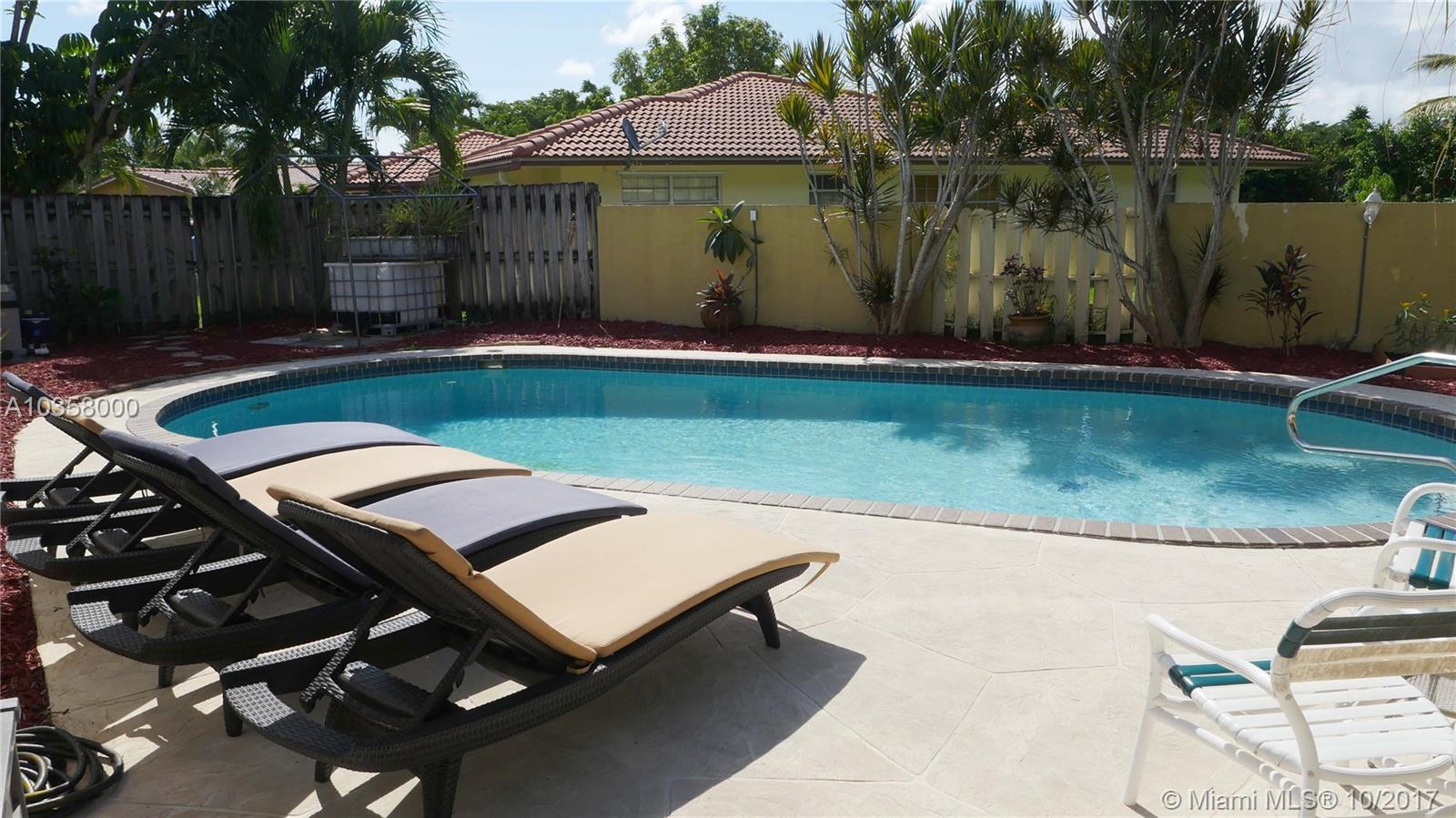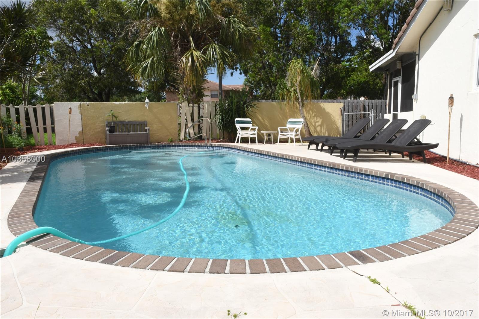 Lovely and spacious home nestled in a cul-de-sac with a pool in the Heart of Desirable Forest Hills in Coral Springs! 4 bedrooms, 2 bathroom**Spacious family room and formal dining area**NEW Hurricane Impact Windows and Sliding door** Large enclosed porch perfect for entertainment. This home features a gorgeous salt water system pool with a Brand New pump + diamond brite 1 year ago! Huge backyard completely fenced (only a few of these are)**NEW Electrical Panel!**Newer AC and Water Heater!**Newer Roof!**Freshly Painted** Minutes away from Downtown, Coral Square Mall, Restaurants, Parks and A+ Rated Schools. This will not last! You cannot find a 4 bedroom house with a pool and in this condition for this price range in Coral Springs with all these Upgrades! Call this house your home Today!