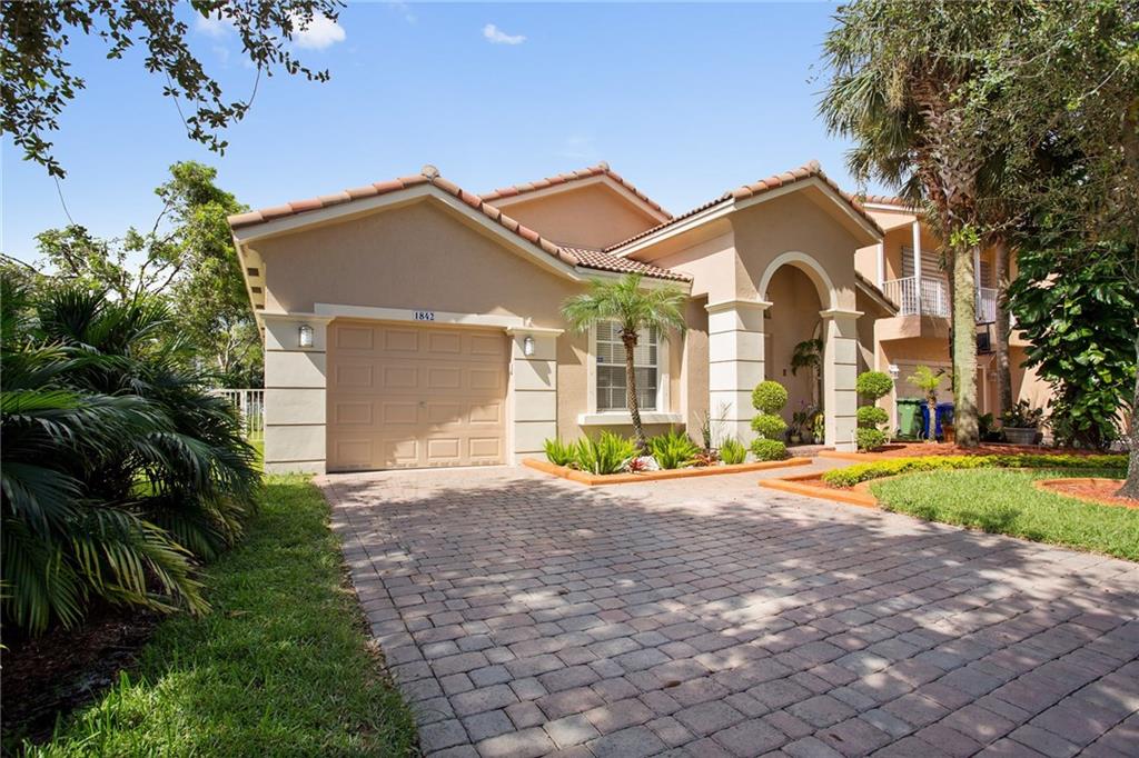 Rarely available 3/2 model with gorgeous water view. Kitchen open to breakfast nook & family room with sliders to enjoy the views & fenced back yard. Vaulted ceilings in formal living & dining rms. Master suite has dual sinks, garden tub & separate shower. No carpet, tile in living areas and wood floor in bedrooms. Inside utility room. Walnut Creek is a 24/7 guard gated community, HOA incl lawn maint & mulch, exterior pest ctrl, alarm system, security patrol, Community pool, Clubhouse, tennis & playgrnd.