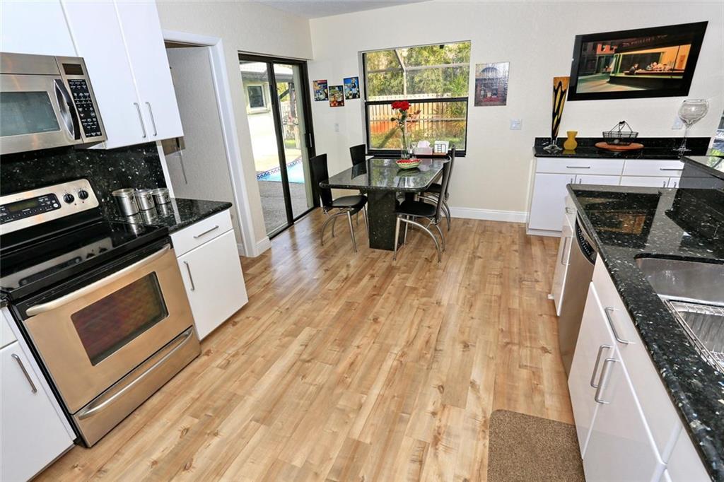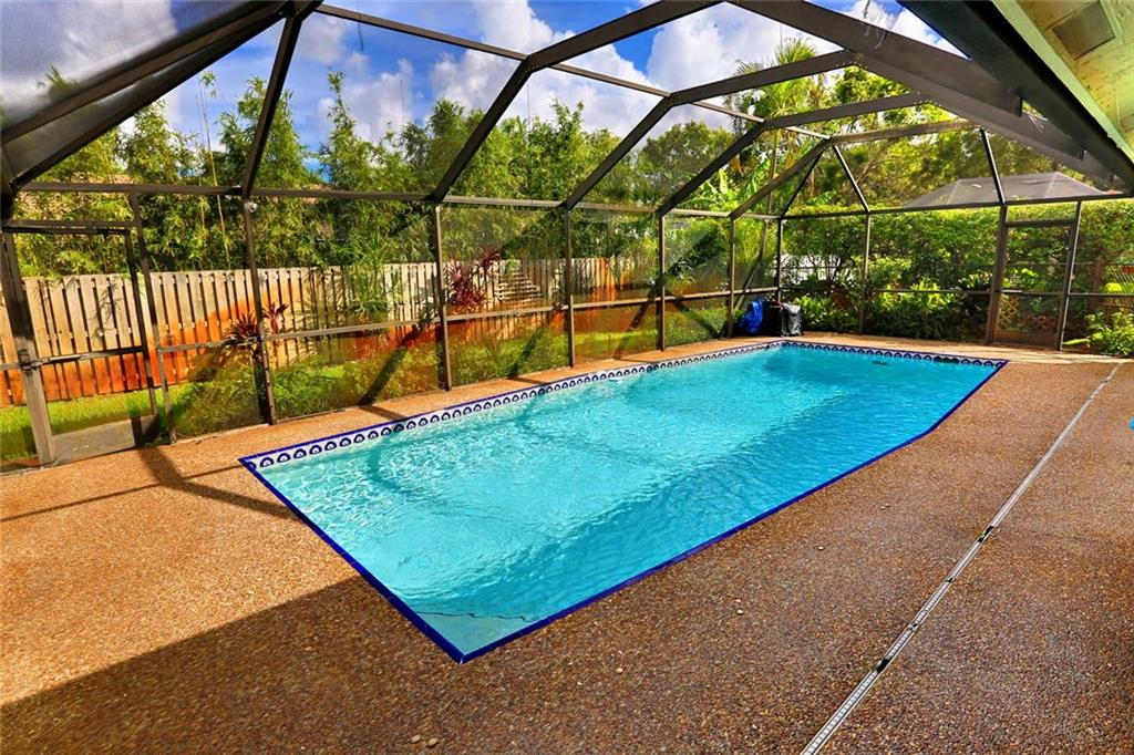 Spacious, 4 oversize Bedrooms & closets, 2 Baths, with pool. UPDATED kitchen, granite countertops, breakfast table & SS appliances. New, wood/laminate flooring. Abundant high-hats throughout, family room equipped with Surround Sound Pool diamond brite redone in 2015, both bathrooms has direct access to pool. New Roof in 2006, new a/c Oct. 2017, accordion shutters. Fully fenced backyard for safety of kids & pets. Walk to nearby parks. Truly a sensational home. Furnishings negotiable & motivated seller!