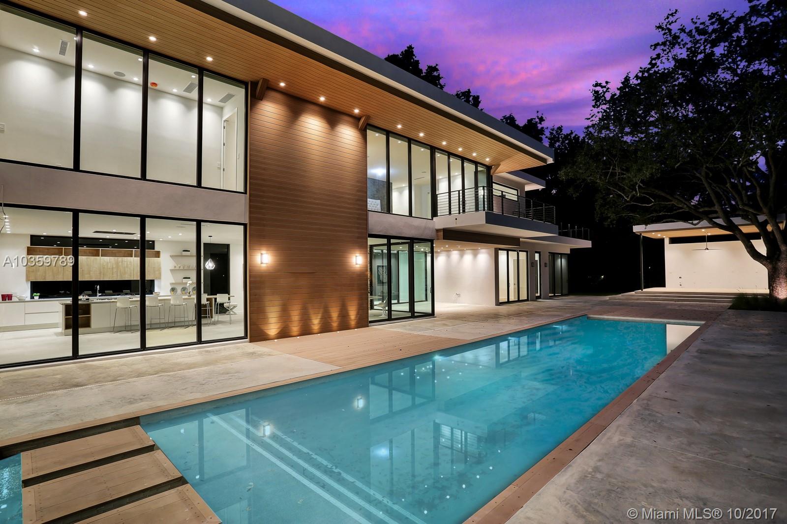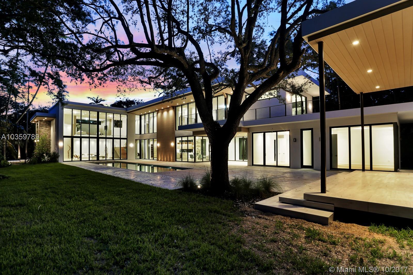 Prime location in North Pinecrest. Unmatched privacy in an urban oasis at end of idyllic cul-de-sac setting. Unique design, inspired by famous German Bauhaus School combined with Miami coolness and the South Florida vibe. Dramatic 22' ceilings, open floor plan with spectacular views from every room and hallway. Make a statement as your guest walk through a glass breezeway to their private two room guest suite. Upstairs home office opens onto gallery overlooking the downstairs living, kitchen offers the highest quality design and Miele appliances and if that was not enough you can take the party outside with an outdoor kitchen and summer lounge.