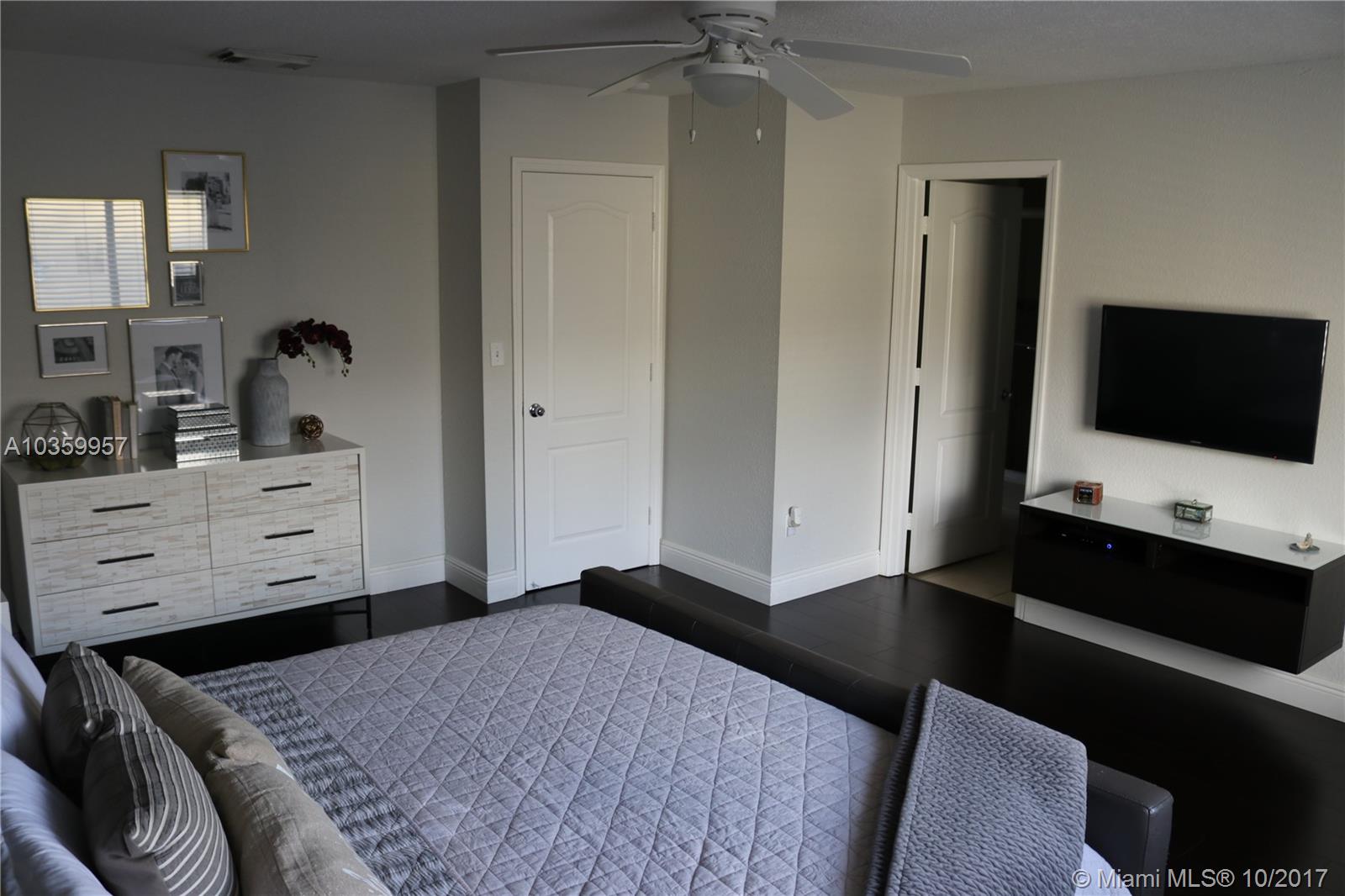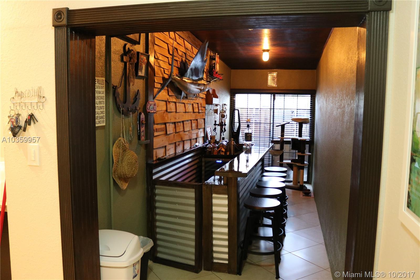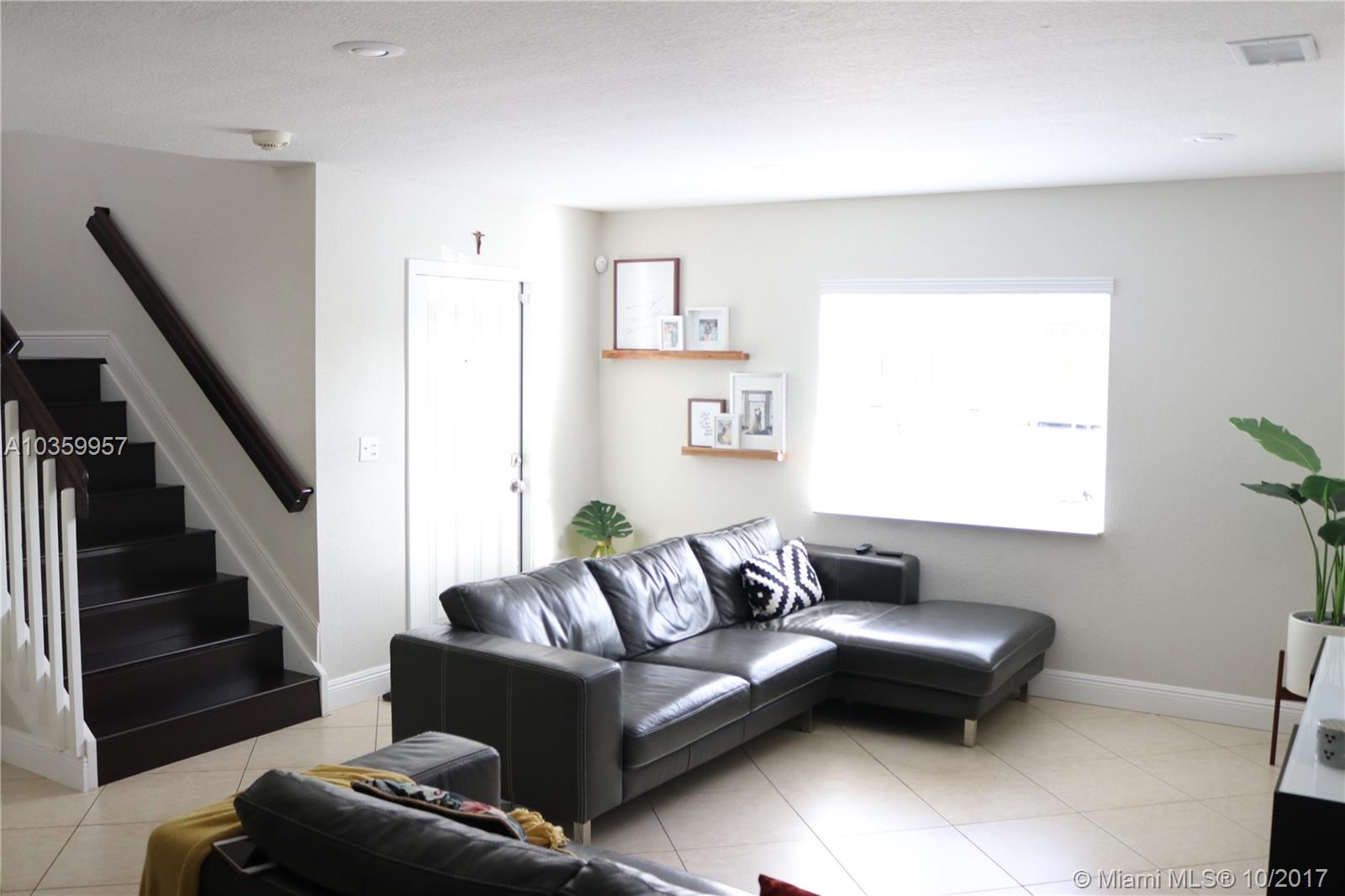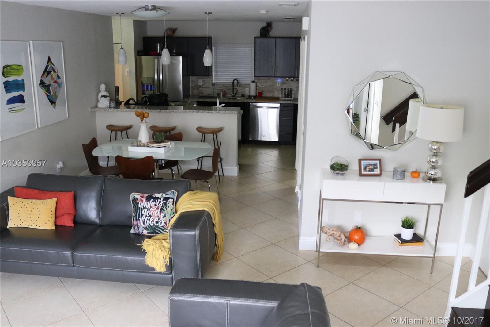 Immaculate 3/2 Lux interior townhome featured in the center of Palm Springs North. A dream starter home for any size family. This home has been completely remodeled with no corner left untouched. New beautiful Granite counter top, kitchen cabinets, stainless steel appliances, completely renovated bathrooms, 24 x24 tile and wood floors. Entertain your guests in your very own bar, sit back and relax in the backyard or come out and see the meteor shower in the upstairs balcony patio. Parking for up to 3 cars. ( One bed room and full bath downstairs )