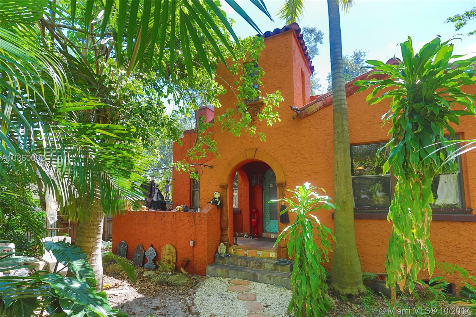 Incredibly adorable historic 1920's treasure. This "Jungalow" gem is nestled in a lushly tropical setting in up-and- coming North Miami (NOMI). This area is a conveniently located, diverse, and culturally rich area just north of 125 St Mid-century Row shops and cafes. Cozy rustic home is an eclectic mix of modern and original architectural detail- coral rock fireplace, hand-painted beamed ceiling, wood floors, and unique handcrafted doors by master artisan. 2BD/1BA plus garage/meditation room. Perfectly peaceful pad for an unbeatable price UNDER $300K