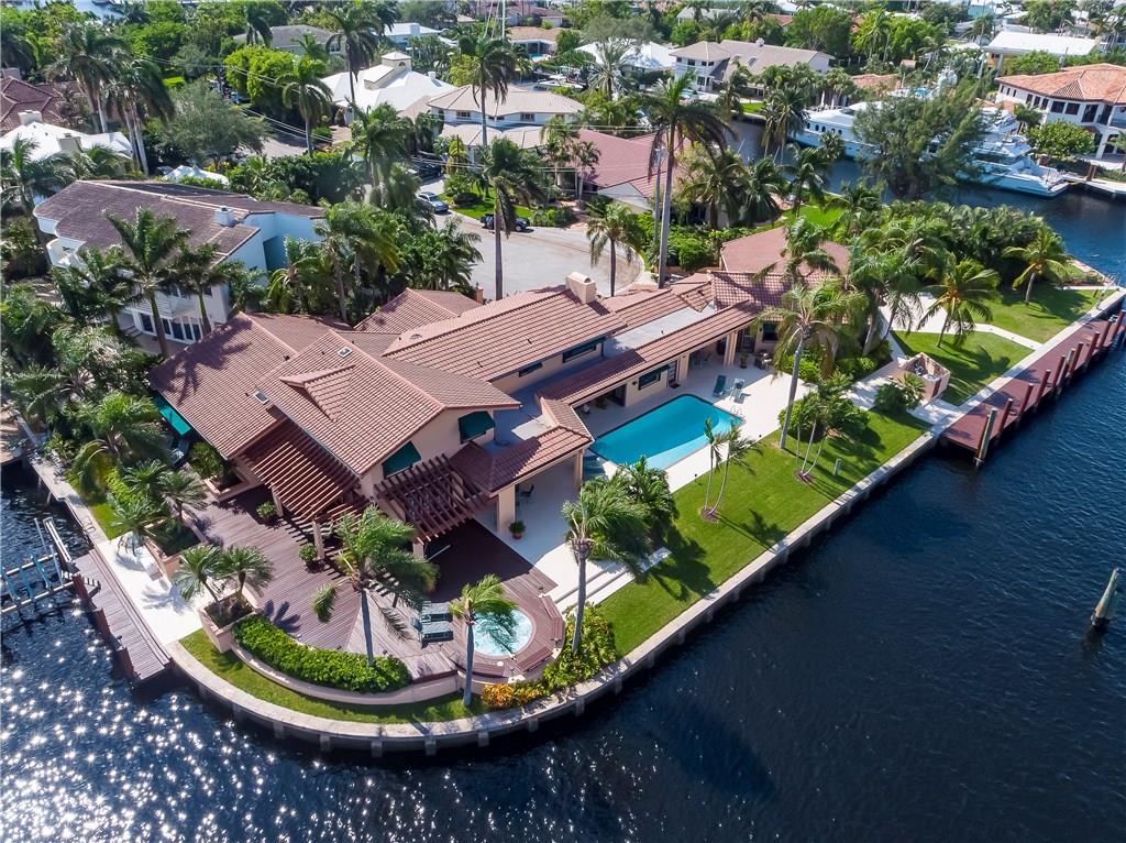 One of a kind oversized point estate with 365 feet of waterfront including over 240 feet on a straight line. Room for multiple super yachts. Wide water views and deep water (over 20 feet in canal) for dockage. Just minutes to the Intracoastal, Port Everglades and the Atlantic. Meticulously maintained home with 7 bedrooms, 6 full and 2 half baths offers great entertaining and living areas inside and out. Drive through garage for yacht provisioning. A separate apartment for staff and crew too.