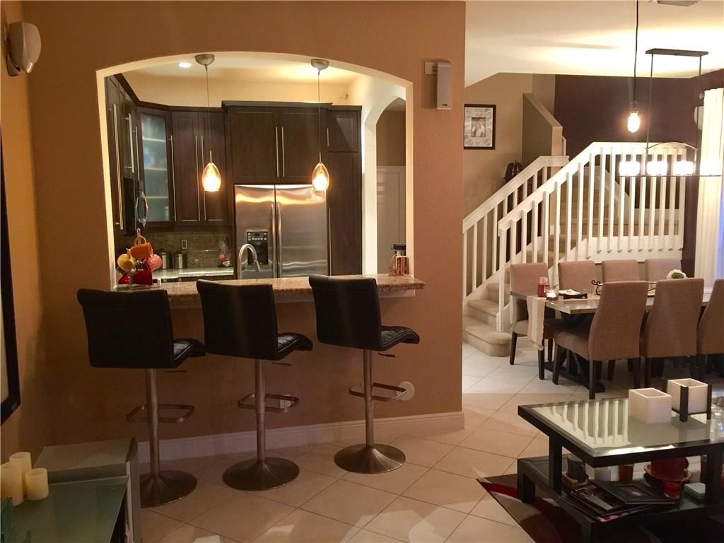 This Beautiful Townhouse with 2 car garage awaits your family. Totally upgraded corner unit with so many extras. Absolutely immaculate. Newer kitchen with oversized cabinets and granite countertops. Ceramic tile throughout the first floor. Surround sound in living room and master. Large master suite featuring 2 closets, dual sinks, roman tub and separate shower. Unique custom lighting fixtures. Blinds throughout. Lots of storage. Hurricane windows. Alarm system. Will not last!