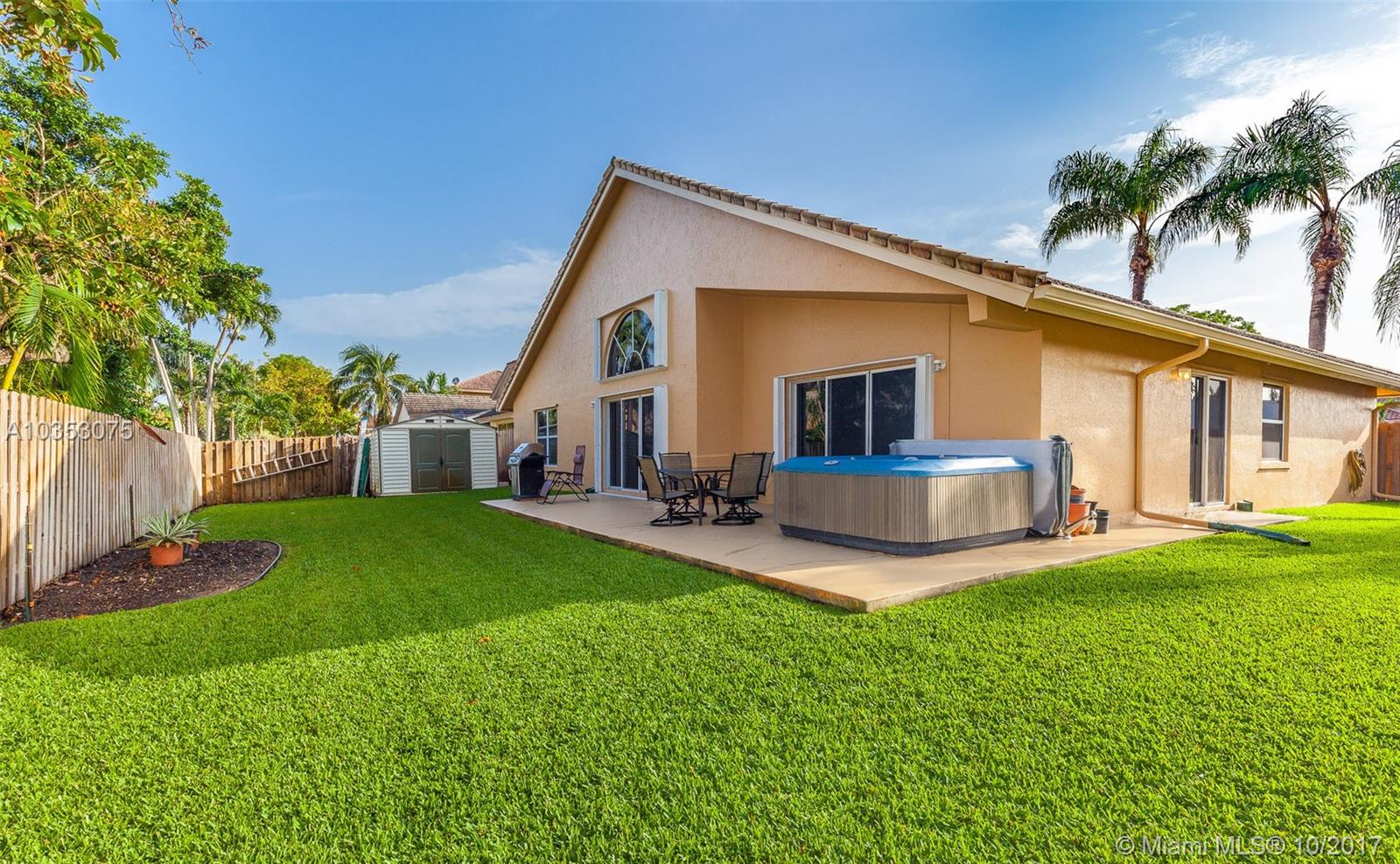 Lovely home in the Heart of Pembroke Pines. The Estates of Tanglewood Lakes is a secluded gated community offering privacy and security. This meticulously kept home has vaulted ceilings and offers plenty of light. The master bedroom and bath are spacious as well as other living areas. The home has an outdoor Jacuzzi, Culligan Water system, 2 car garage, separate laundry room, solar water heater, 10x8 outside storage shed, accordion/panels throughout. Additionally there are many other warrantees including a Home Shield Plus from American Home Shield. List of features and warranties will be provided upon request.