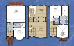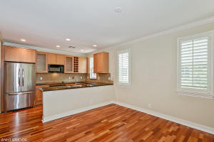 Stunning Magnolia Court three-story townhouse. Private end unit with windows facing south, north & west. High ceilings throughout. Spacious Living Room & Dining Room with hardwood floors and many windows with plantation shutters. Powder Room. Leicht German kitchen with granite counters. Wine cooler in Pantry and extra refrigerator/freezer in two-car Garage. Laundry with front-load washer and dryer. Central vac. Three gracious Bedrooms with seagrass flooring, all en-suite. Custom fitted closets. Conveni