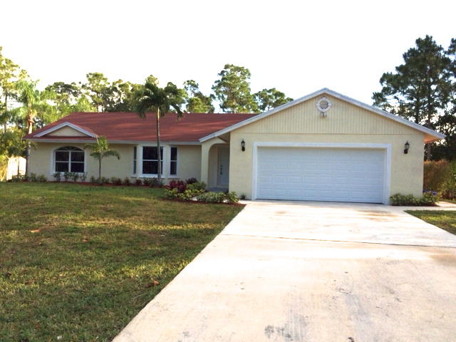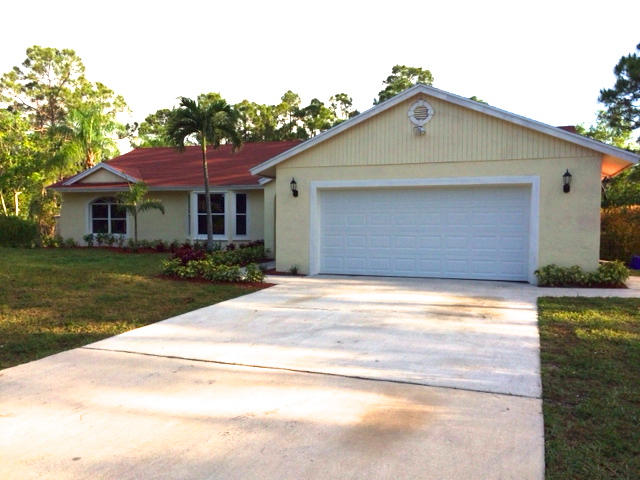 Beautifully remodeled 3/2/2 CBS home in the Acreage! This home boast vaulted ceilings, granite countertops, stainless steel appliances, gorgeous tile bathrooms, dark wood flooring, brand new A/C system, brand new Water System, fresh paint inside and out, new landscaping, and much much more!