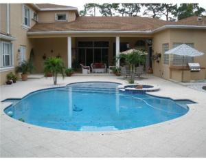 Fabulous builders courtyard home on a 1.3 acre lot in an equestrian community just 20 minutes west of Palm Beach Gardens. 4BR, each with private bath, spacious guesthouse overlooks a tropically landscaped custom heated pool and spa... Upgrades galore: kitchen with granite counter tops, stainless appliances, double convection oven, island cooktop. 600 SQFT master bedroom and bath with2 large walk in closets, custom marble tub, large 2nd family room upstairs that could be converted to a 5th bedroom, security