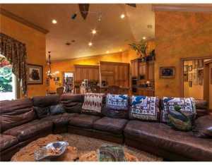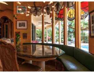 Beautiful landscaped entry with hand carved wood door, upon entering the foyer you instantly appreiciate the high volume ceilings and the bright openness that sets this home apart. The living room features floor to ceiling windows overlooking the large open pool complete with beautiful lake views. The custom kitchen features wooden cabinetry with granite countertops that flow into the family room along with a lovely casual area for dining which also overlooks the pool and lake. The covered patio, pool and