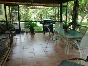 Nice updated home. In great condition on large tropical paradise lot with pool and on canal. Roof replaced after 2005 hurricane. Well maintained. Nice quiet neighborhood. Country setting but close to town and shopping. Ceramic tile flooring. Kitchen is large and has granite counter tops. Big covered screened patio complete with fan. Yard even has an arbor and a greenhouse! All room sizes approximate.