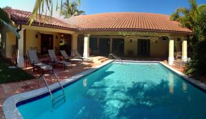 Built new in 2008. One Of A Kind. Mexican Tile Throughout. Cathedral Celings in Living Room. Crown Molding, CGI Hurricane French Doors Throughout. Chefs Kitchen W/Sub Zero Refrigerator. Viking Gas Stove and Microwave. Fischer Packel Dishwasher.. Gas, Tankless Water Heater. Gas, LG Washer and Dryer. Direct Feed Gas Grill On Loggia. Casita Guest Bedroom Ensuite. Tropical Landscaping creates totally private backyard. Multiple Water Features.