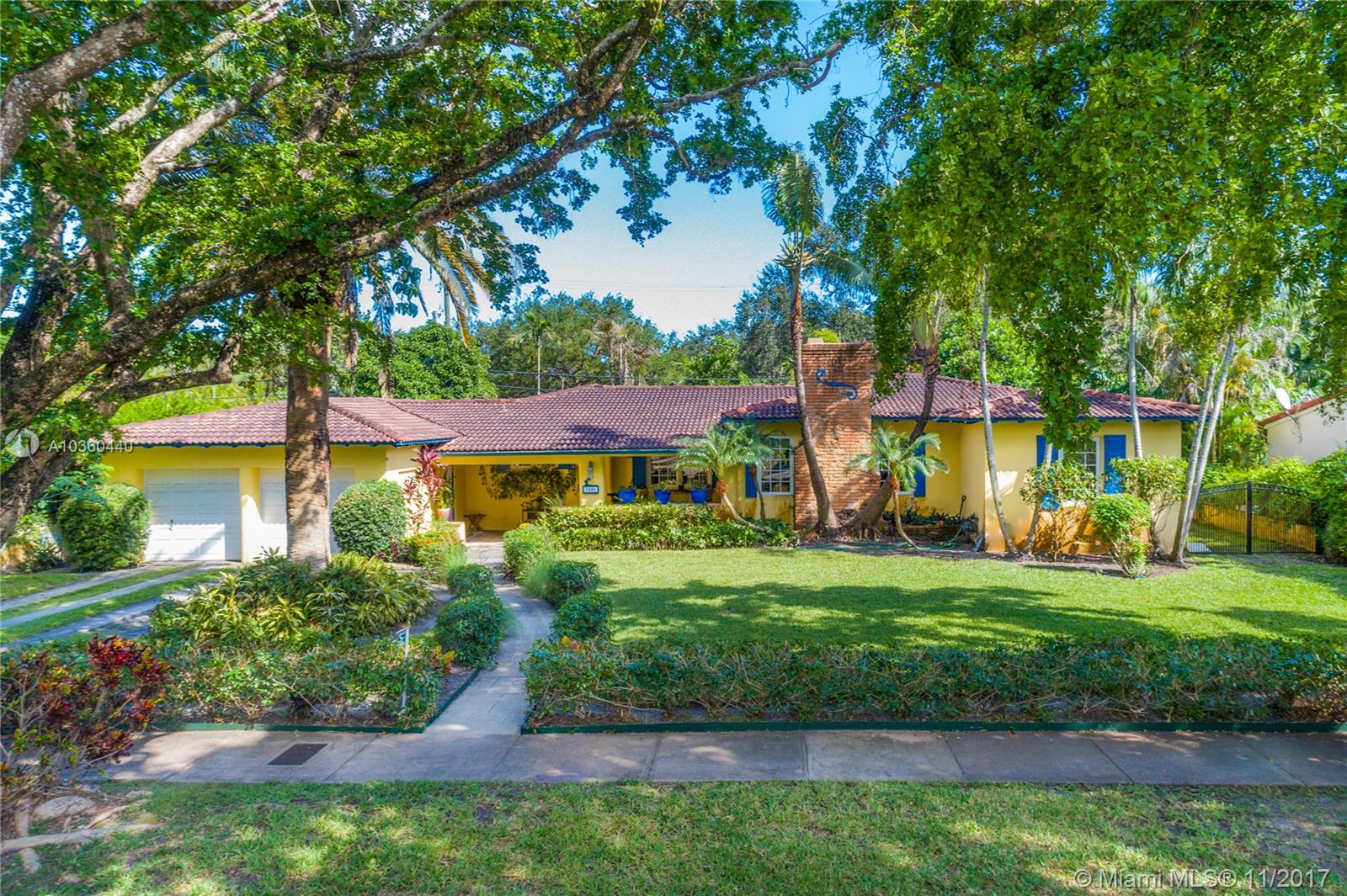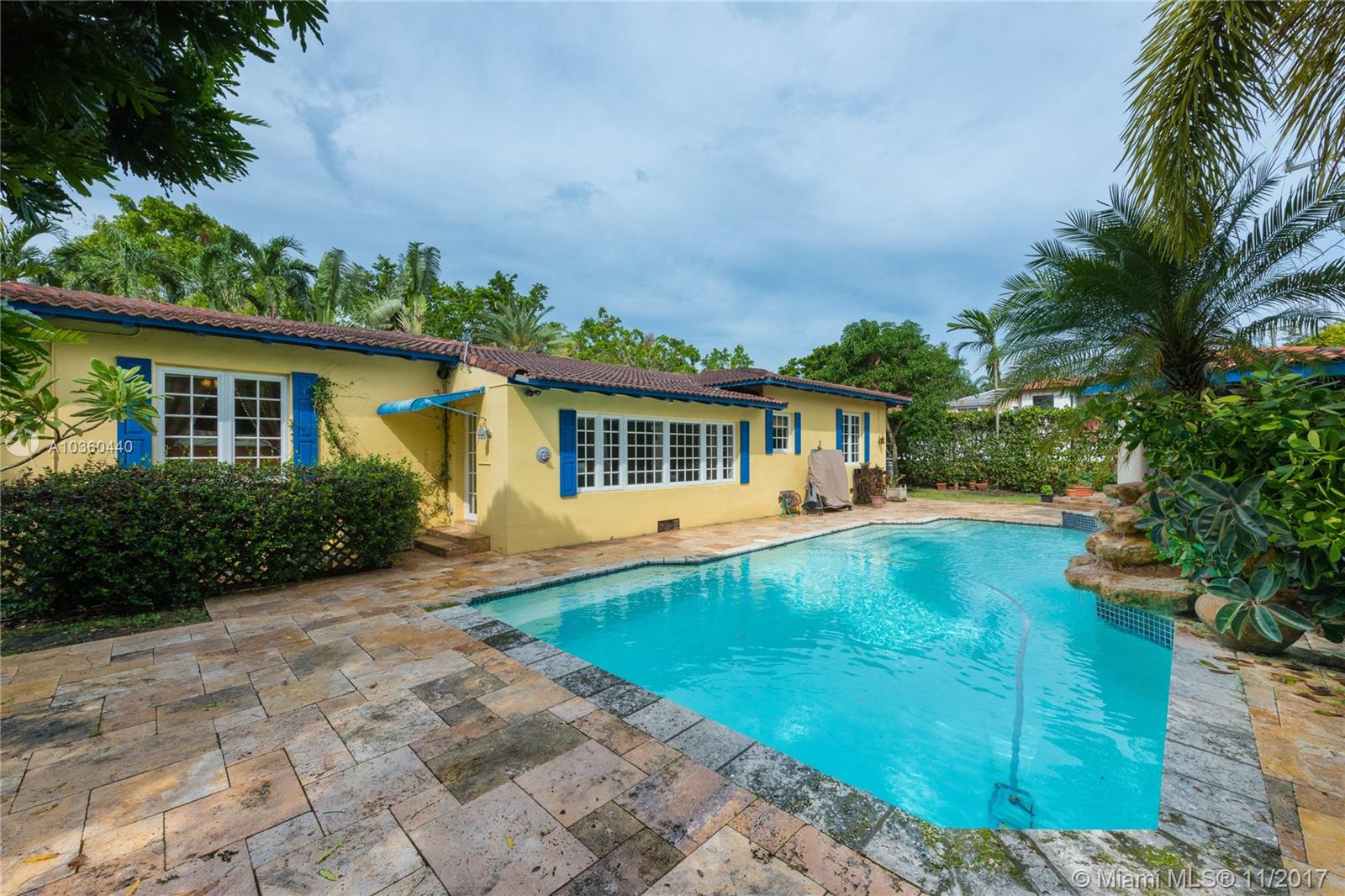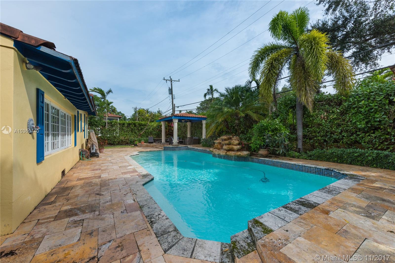 1930's classic home located in the Golden Triangle. Spacious 4 bedroom/ 3 bath (2,701 adj.sq.ft. per appraisal) with formal Living & Dining rooms; exposed beam Florida room on a beautiful tree lined street. This property boasts a covered front porch, impact windows/doors, distinctive fireplace, plaster molding, 2014 plumbing and a rich sparkling pool/patio with a gazebo on a tropical 12,400 sq. ft. lot with a 2 car garage. A stroll to the youth center, public library & Miracle Mile.