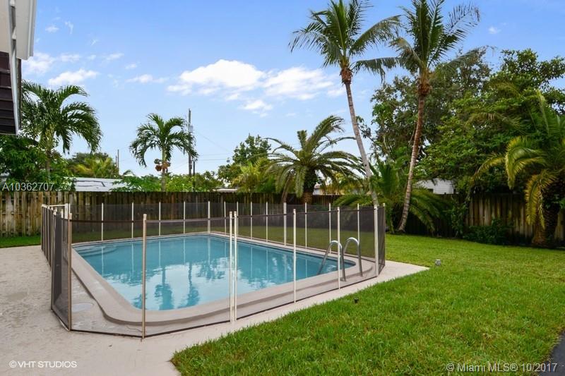 Lovely, upgraded Hollywood Hills pool home! Beautiful fenced yard, pool also has safety fence. Attached garage and circular driveway for lots of parking. Yard has lots of grass, gate to alley, and room for more parking. Covered patio area perfect for outdoor entertaining. Kitchen has granite countertops, oak cabinetry, stainless appliances. Fully remodeled baths; master bedroom has en-suite bath; crown molding throughout home. Tile and pergo flooring, master bedroom carpeted. Newer AC, new impact windows, and hurricane panel for patio door. Perfect family home, in desirable area, great location, walk to schools, shopping, transportation, houses of worship; minutes to beautiful beaches, entertainment! (Please do not block sidewalk when parking.)