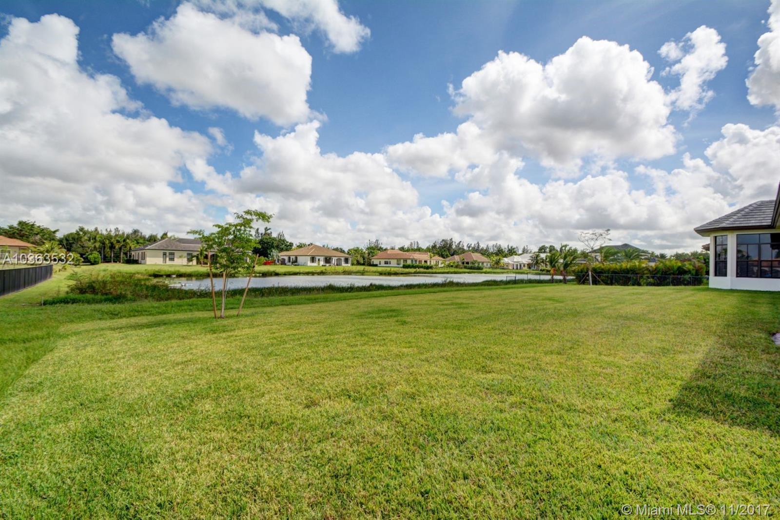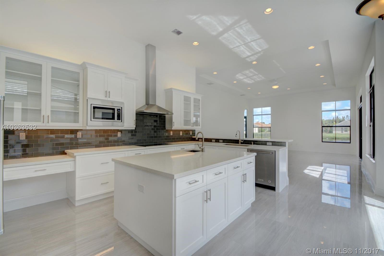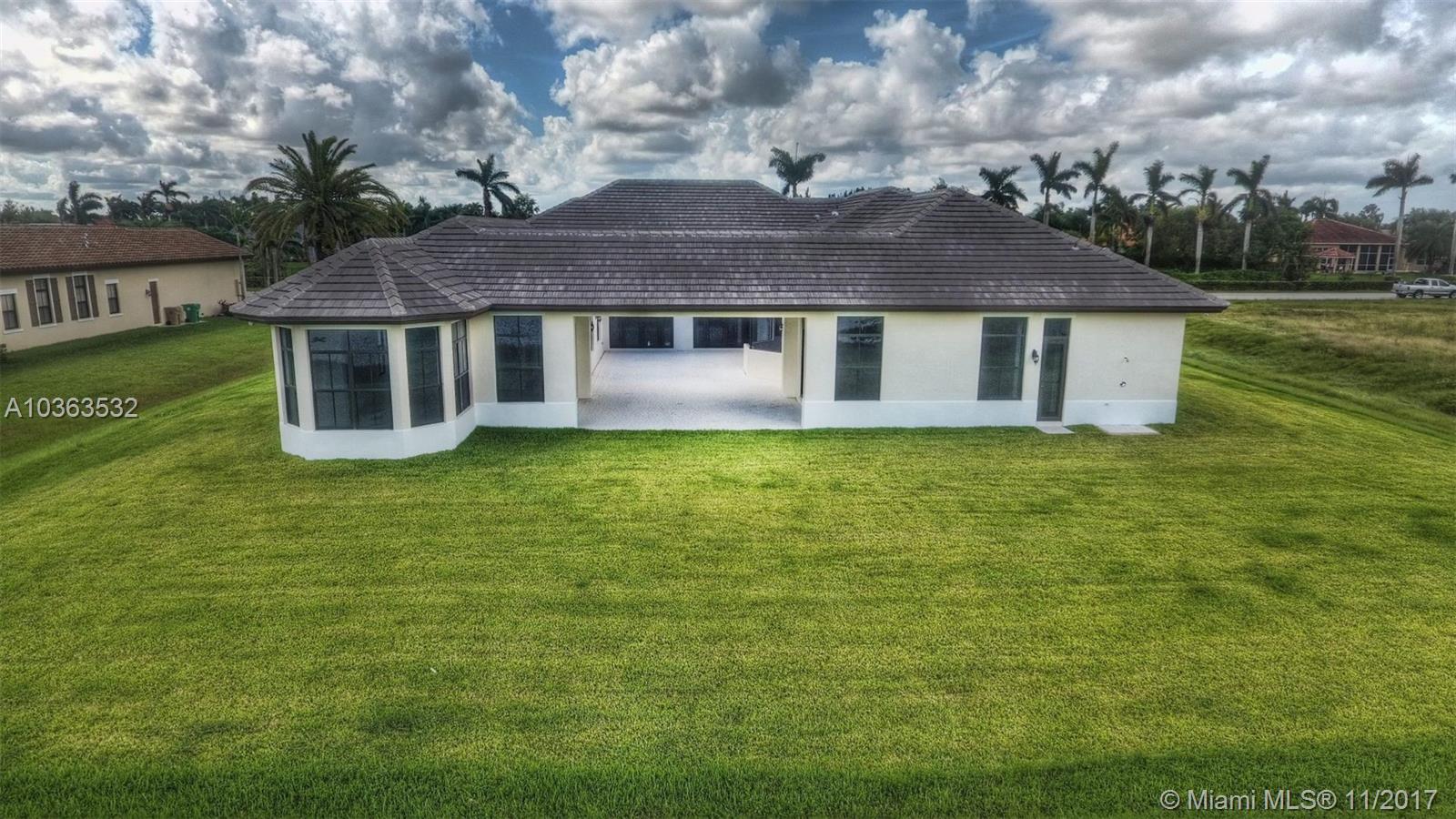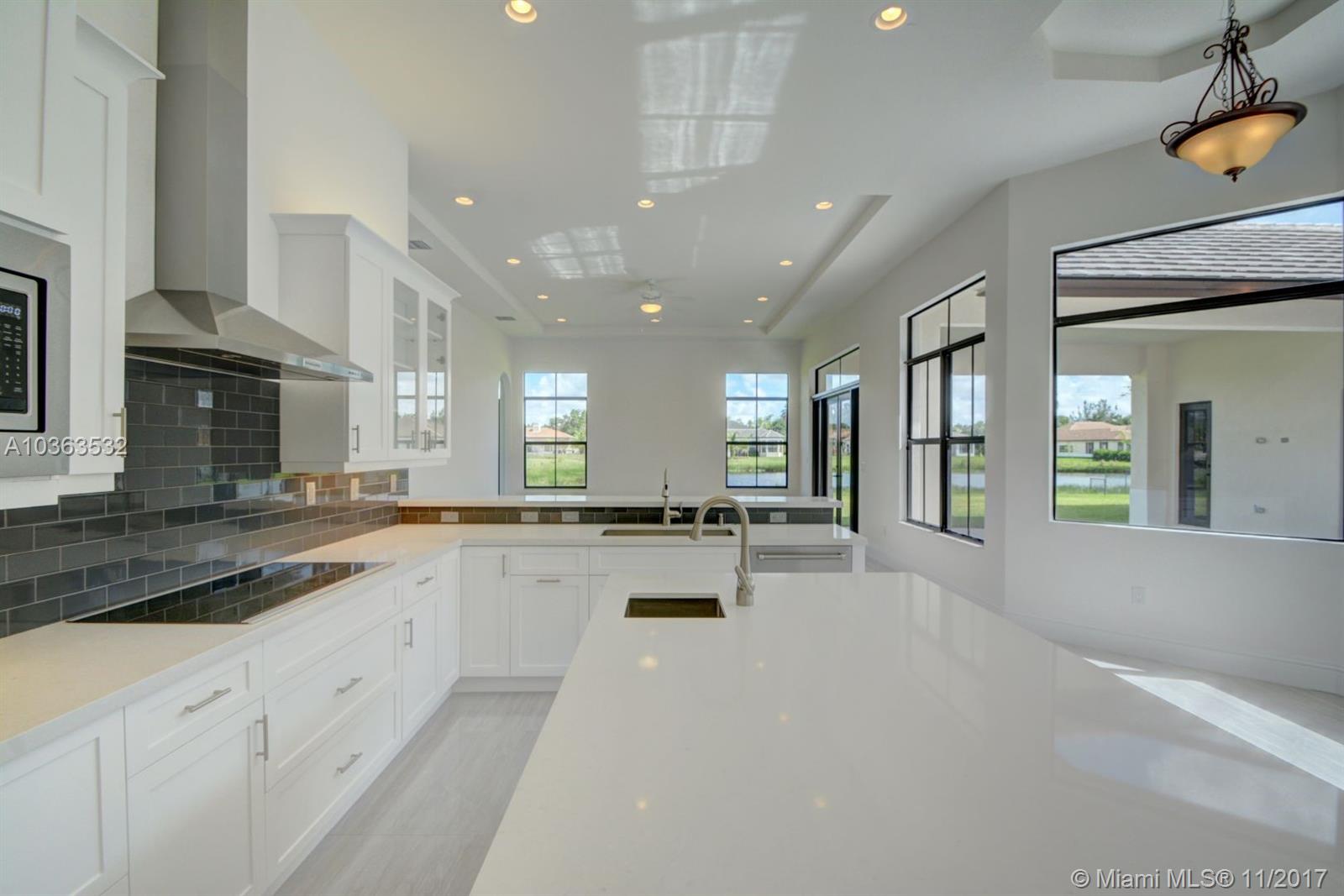 BRAND NEW! Just completed a gorgeous 1 story - contemporary style home with a unique courtyard that the living area and master suite overlook. Located on a picturesque lake in Davie's newest luxury development - Camelot Estates. This is a private neighborhood in central Davie with just 19 builder's acre home sites. A RATED Middle school district. This home is airy and completely surrounded by windows letting in natural light. Home features high end kitchen counter cabinets and quartz counter tops, top of the line 36 x 36 porcelain flooring, butler pantry with glass doors, Impact windows, french cabana doors, a huge master suite with custom closets and sitting area, Fleurco Aria free standing bath tub, electric car charger and more upgrades! HBW Builders warranty included.
