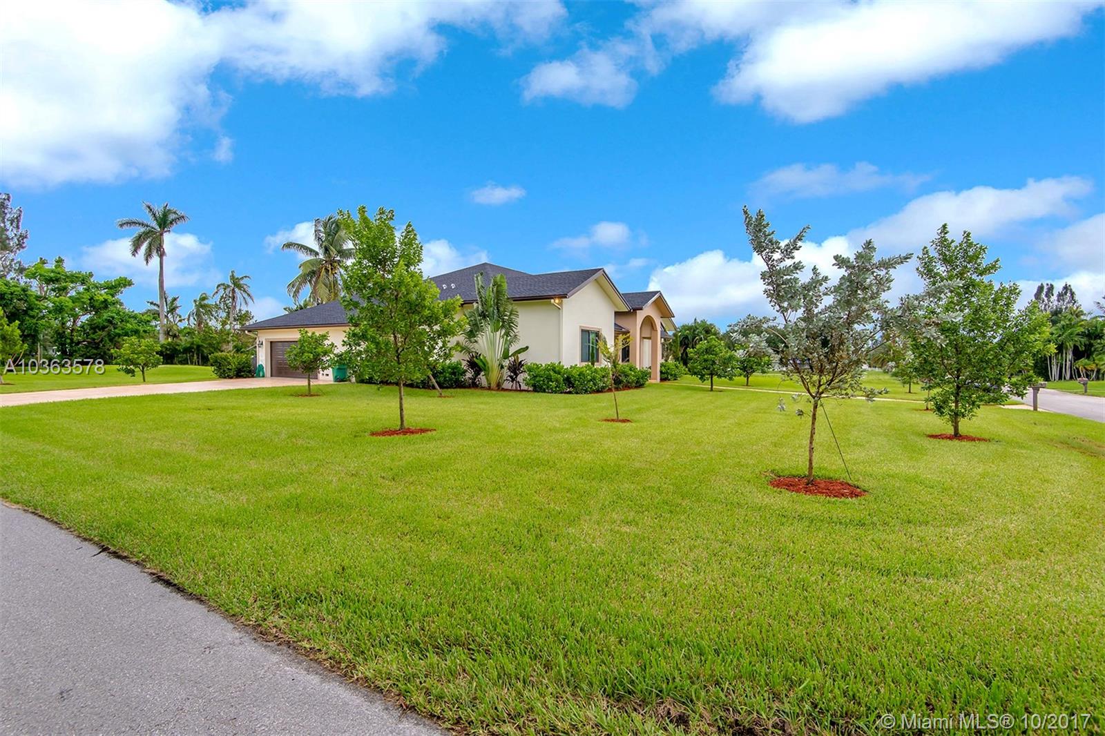 An elegant & newly built, country-style, estate home on an acre corner lot. A rare opportunity to own a new home amid the peaceful Davie farms & equestrian homes, while still being near world-class beaches, shopping, dinning & top schools. This home is turnkey & stress free. Thoughtfully built, featuring 3 bedrooms/3.5 bathrooms & an office/guest room, high impact windows & doors, volume ceilings, open layout with split bedroom floor plan, pantry & laundry rooms. Perfect for entertaining with warm wood floors, a custom all-wood kitchen & wet bar topped with quartz & granite counters & covered patio with an expansive lot. The oversized 2.5-car garage houses the 2 super-high efficiency Lennox HVAC units & has a workbench. Driveway fits 6 more cars.
