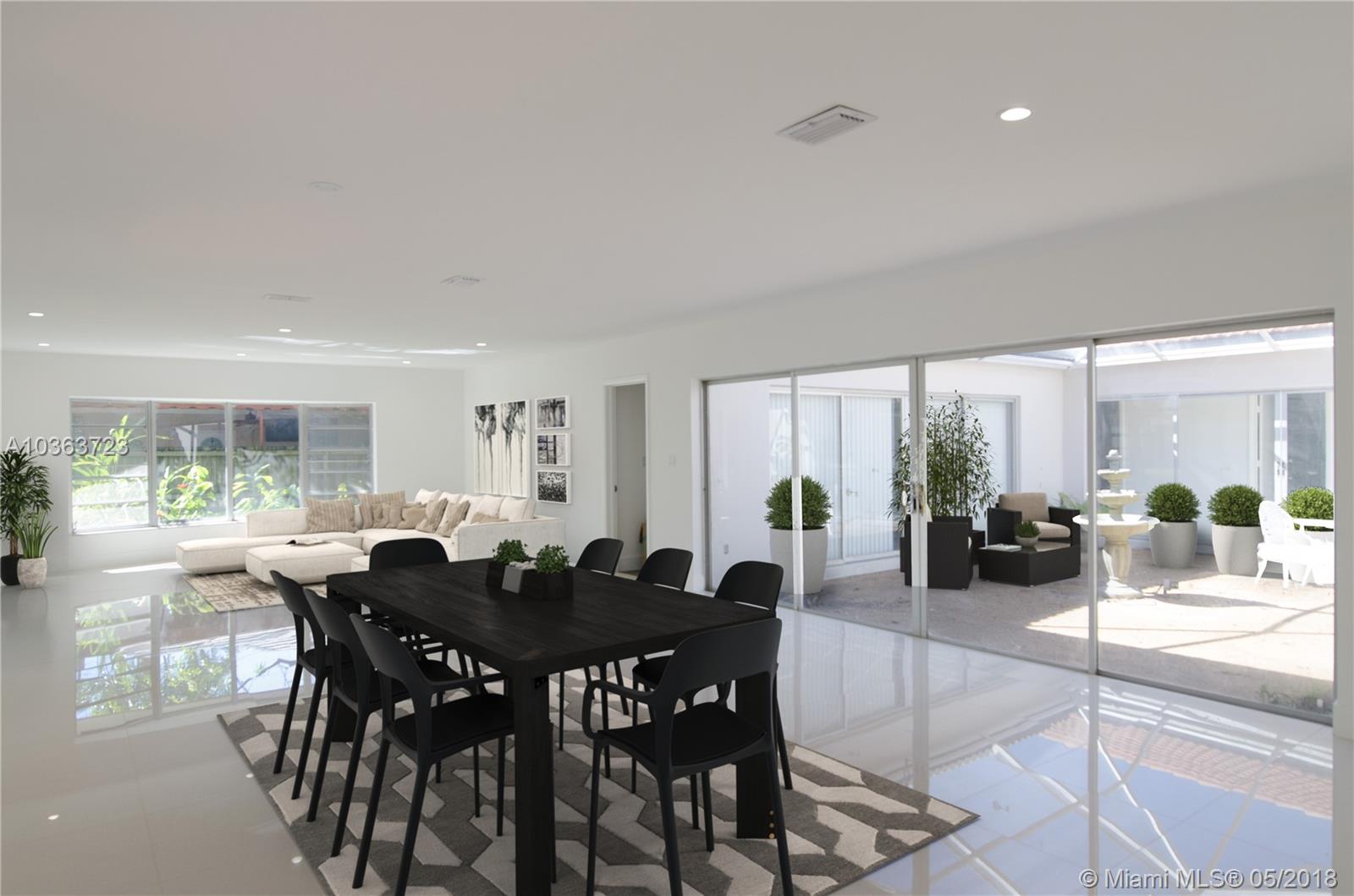 Unique opportunity to own such a beautiful home inside the Country Club of Miami. Tastefully remodeled with custom-made kitchen cabinets. This 3bd/2ba home features a courtyard in the middle of the home, accessible from all rooms and bedrooms. It is currently a blank canvas waiting for new owners to come in make as beautiful and green as possible. All bedroom closets have been custom-made, bedrooms have dark gray laminate flooring, living, kitchen and bathroom areas have 24x24 porcelain tile. Both bathrooms have been completely remodeled with unique finishes and brand new glass doors. This is a gated community with 24hr surveillance and security.