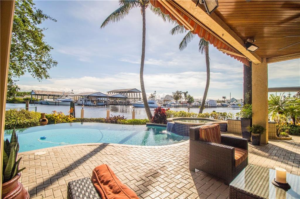 Bring your boat! Waterfront home with 90 foot of dock on the river. This house is on the end of a long street with a wide river view and Ocean access. This 4 bedroom 3 bath home includes volume ceiling in the living room, a fireplace, a Wine room, loft and 2nd floor master with terrace. Pool with infinity edge. to sit and watch the boats go by. Must see!