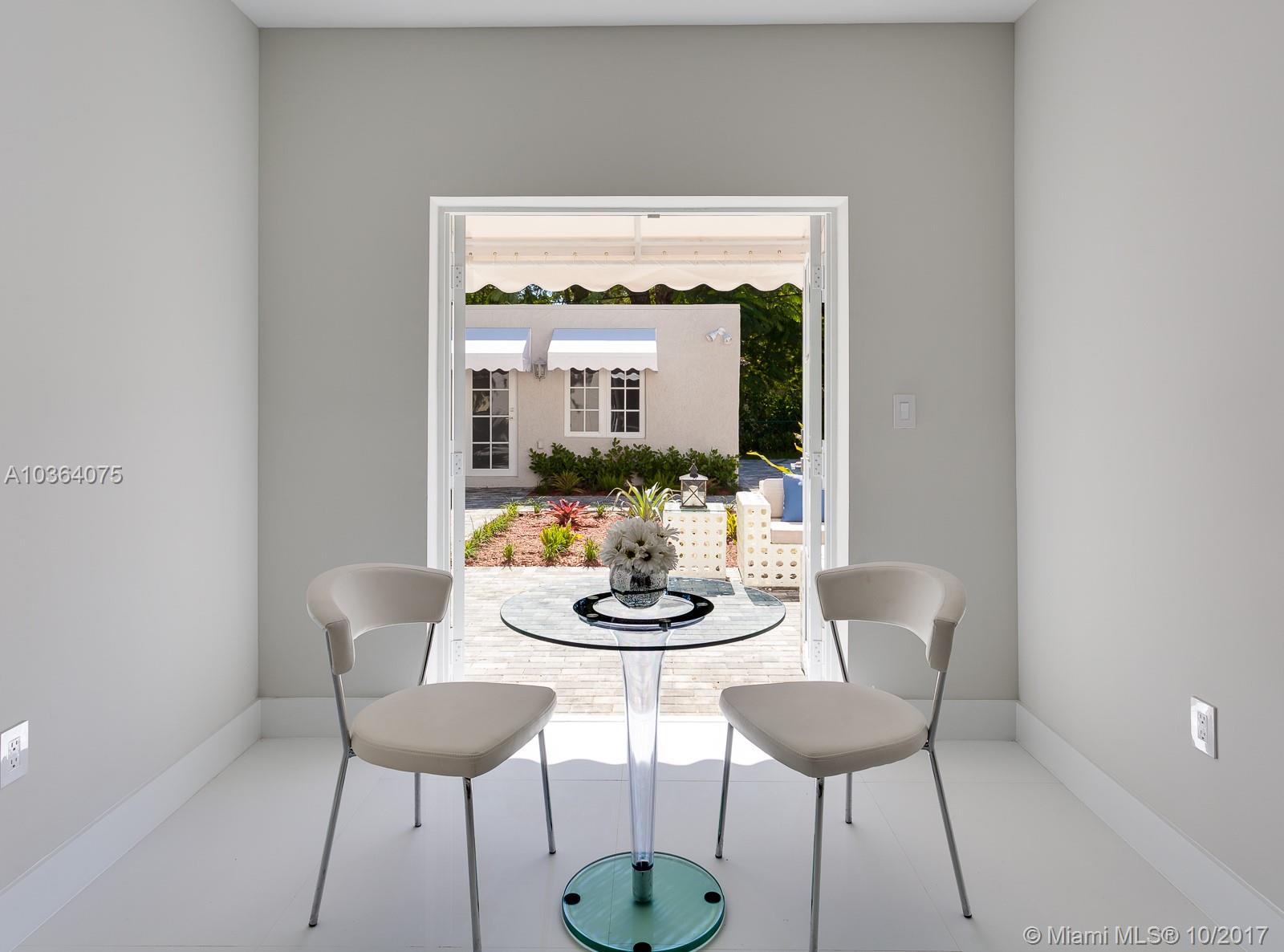 Charming “new” 1928 Old Spanish in a fabulous & timeless Coral Gables neighborhood. Sun-drenched, sophisticated & completely remodeled from the tile roof to the porcelain floors. It is freshly done, including new impact glass, plumbing, electric & AC. European cabinetry in kitchen & baths w/state-of-the art fixtures, appliances & built-in closet systems make a statement. Main house is 3/3, plus a large 1/1 guest house, both overlooking the garden & pool. You will not want to miss this Very Special Home.