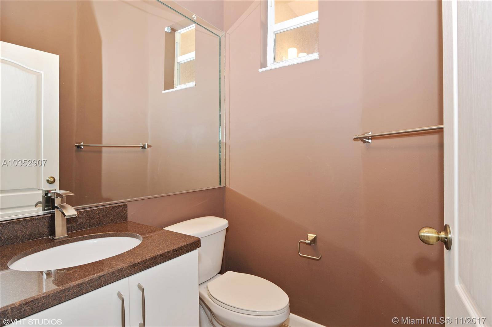Stunning townhouse being sold by original owner located in South Doral and in an excellent school district and featuring an updated kitchen with granite counters & wooden cabinets, this 3 bedroom 2.5 bathroom two story home is surrounded by lakes & a glistening swimming pool inside a beautiful private gated community. Complete with a 1 car garage & private patio yard for entertaining. Hawksnest features a low maintenance fee and is in a prime location within minutes of the Turnpike and Dolphin Mall. A must see!