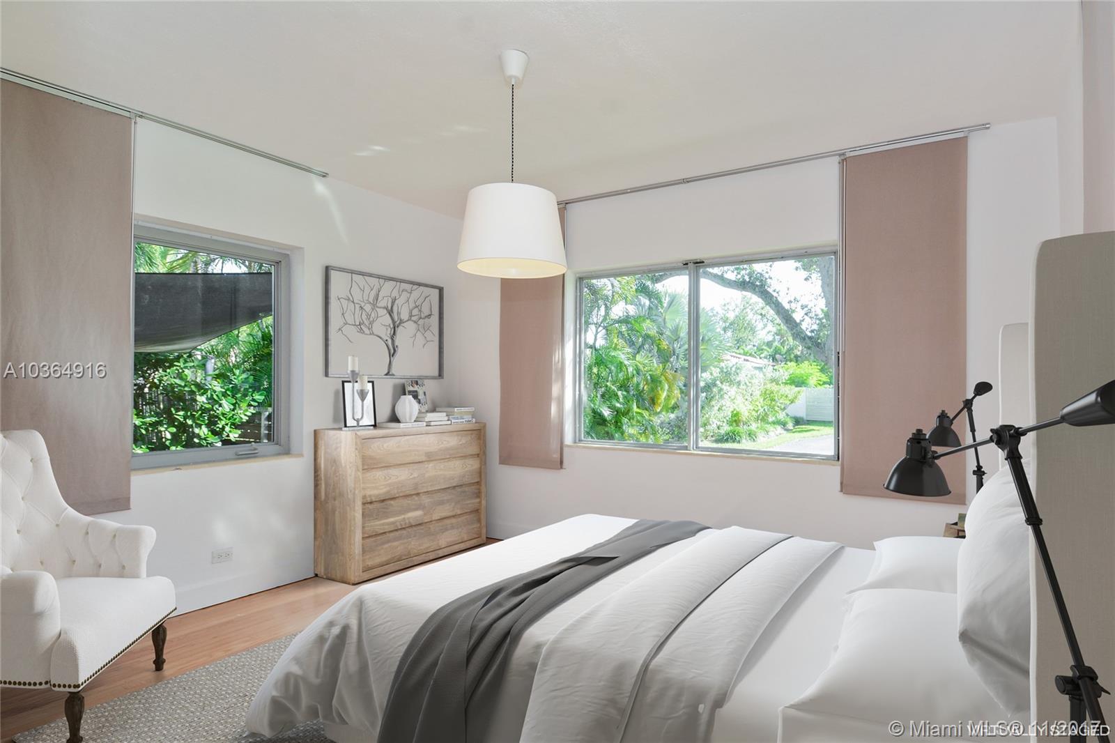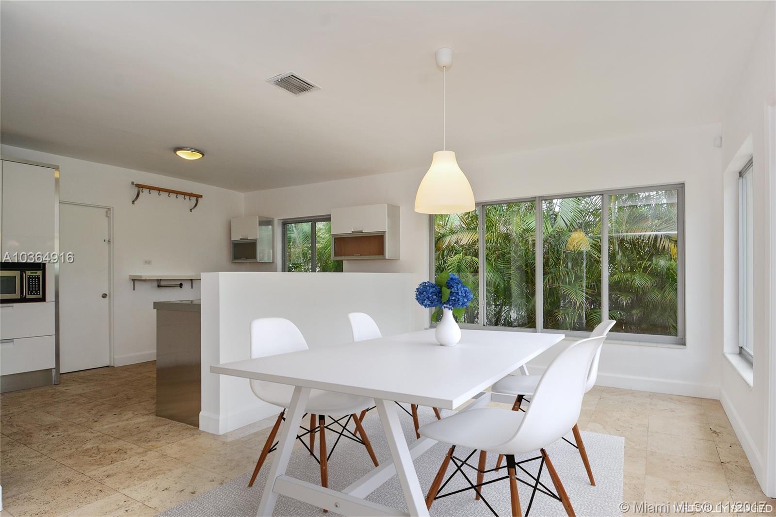 Exquisite Morningside MIMO Masterpiece. Twice featured on the Morningside Historic Home Tour. This modern 3 bedroom + family room that can easily be converted to a 4th bedroom, 2 Bathroom Home is Remodeled with the best of taste. 8,100 SqFt Lot. Lush landscaping. Impact windows (huge picture windows) and doors, lots of sunlight, red oak and travertine floors, glass family room, Large open modern European Kitchen with high-end stainless appliances, spacious master suite with modern ensuite master bath. Home is set far back on a raised lot. Private tropical yard.