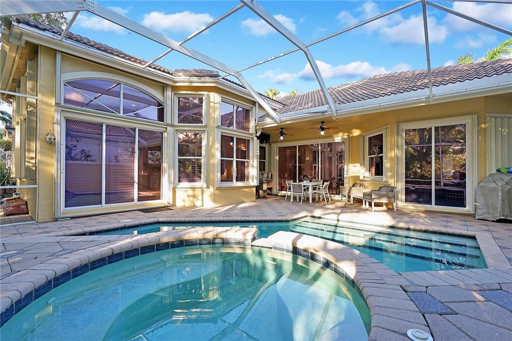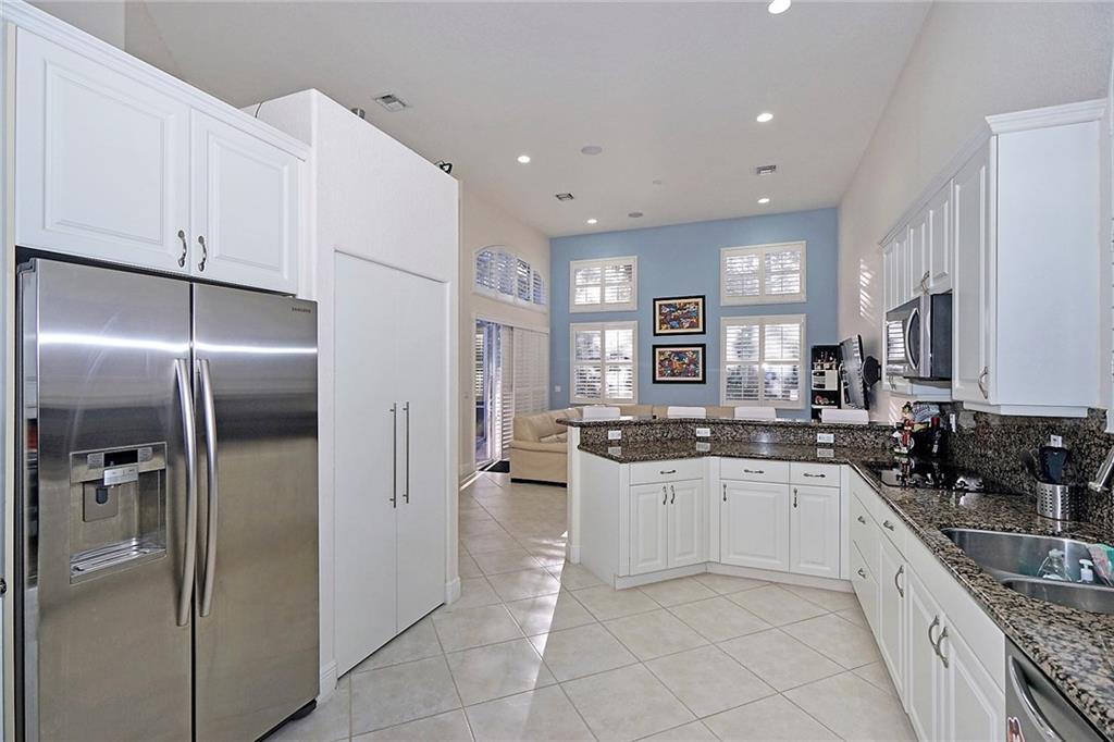 IMMACULATE , UPGRADED 4/3 WITH 3-CAR GARAGE, SCREENED HEATED POOL AND RAISED SPA. UPGRADED KITCHEN WITH GRANITE COUNTERS, 42 INCH CABINETS, SAMSUNG STAINLESS STEEL APPLIANCES, NEW SAMSUNG WASHER/DRIER, SPLIT LAYOUT, VOLUME CEILINGS, SPACIOUS FAMILY ROOM AND A SEPARATE LIVING ROOM AND DINING ROOM. BOSE SYSTEM STAYS. ACCORDION SHUTTERS. NEW INTERCOM SYSTEM. MASTER BATHROOM HAS DOUBLE SINKS AND JACUZZI TUB. MAINT FEE COVERS LAWN. SEE LIST OF UPGRADES.
