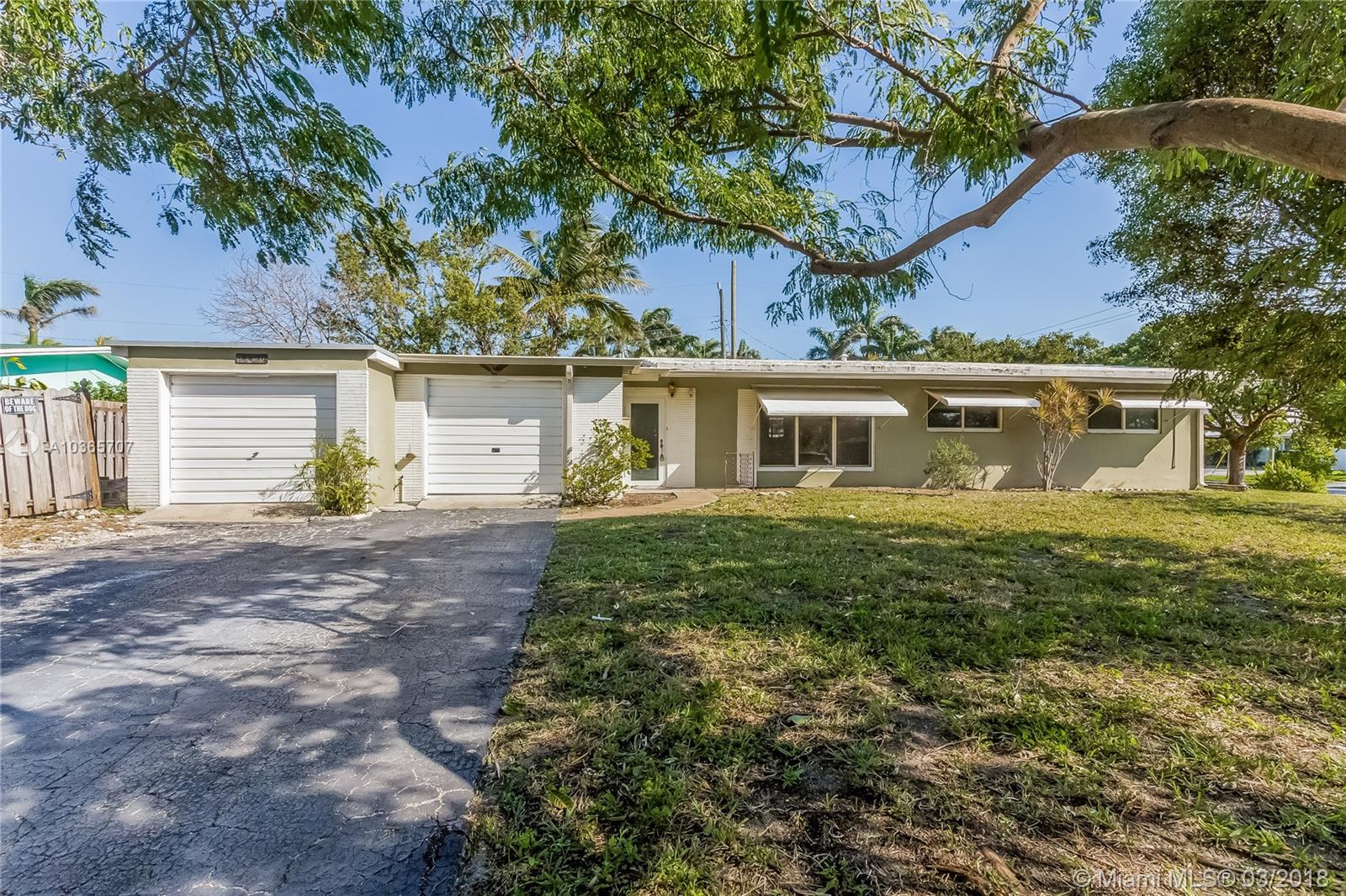 ****BIG PRICE REDUCTION, TIME TO BRING OFFERS**** Great Family home on East side. Large corner lot! 3 bedroom 2 bath home with TWO GARAGES! One of the garages is over sized for the hobbyist or extra storage. Close in 2nd garage for 4th bedroom!This home has IMPACT GLASS & Doors.Lots of closets & storage in the home. Formal dining room with wet bar.Lots of room for a family to spread out. Home has Terrazzo floors , polish or install ready for any floor. House is fenced in and even has a dog run on the side yard. Room to store your RV or BOAT. Oasis sprinkler water. A/C 7 years young. Come live East, one of Pompano's best neighborhoods. Less than 5 minutes away is one of Pompanos best waterfront parks, dog friendly too, known as "Squirrel Park".As -IS.
