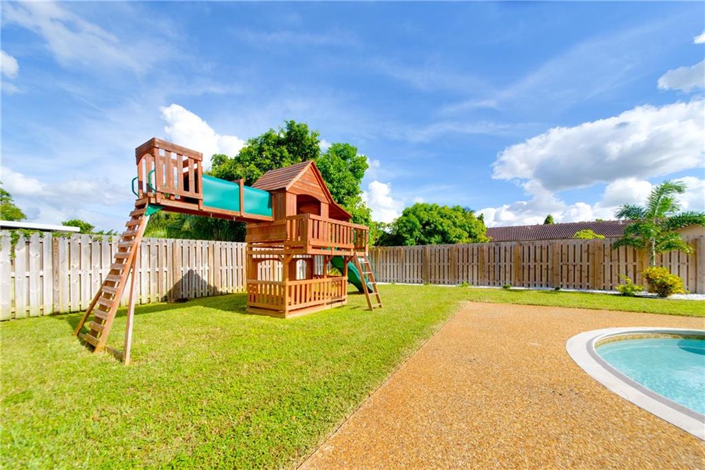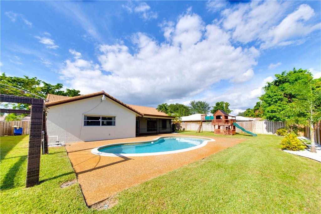 ABSOLUTELY STUNNING !!! Completely remodeled 4/2 pool home in Oak Wood. Wide open floor plan. Porcelain tiles throughout common area. Fully updated kitchen with real wood 42" shaker cabinets, granite counter tops and SS appliances. Completely private fully fenced in backyard. Swing set included in sale. Roof is 2014, Fence 2016, A/C is brand new. Home has panel hurricane shutter. Don't miss this opportunity !