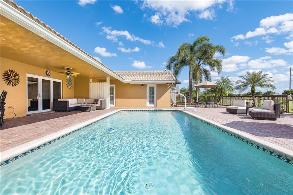 AMAZING & TURNKEY! Over $170,000 In Upgrades (See Improvement List), 4 Beds, 2 Baths Waterfront Pool Home w/Upgrades Galore Including $40,000 Impact Windows/Doors, Newer Enlarged Kitchen w/Island, Granite Counters, Stainless Steel Appliances, Newer Master Bath, All New Tile Floors, 12-Year Roof, 2-Newer A/C Units, Updated Extended Pavered Patio & Heated Pool Which Is Perfect For Entertaining, Huge Lot For Kids & Dogs, Plantation Shutters, Mosquito Misting System, Security Cameras, & More!