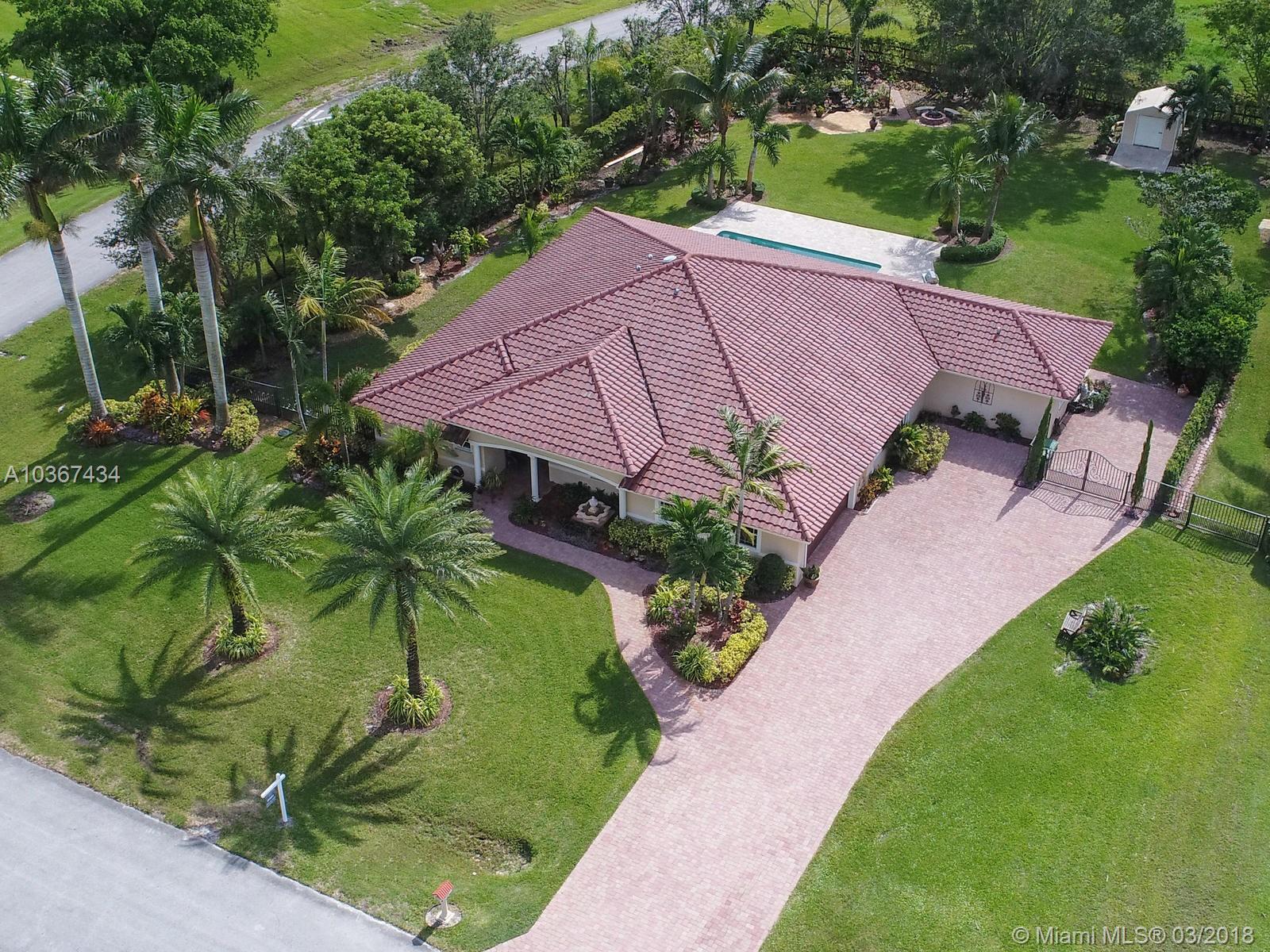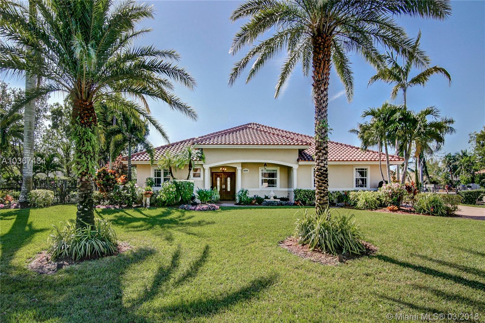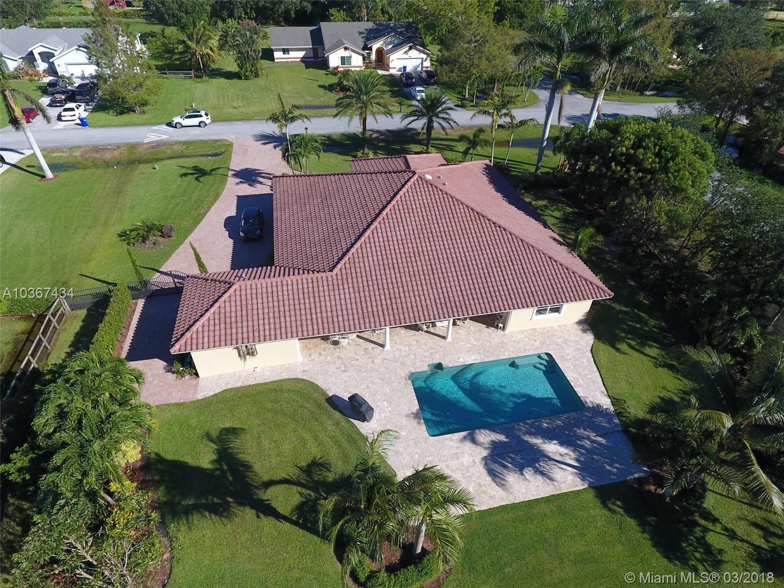 Country splendor, custom remodel in 2007 including roof, kitchen, bathrooms, floors, driveway, dual zone A/C, stainless steel appliances and much more! Home sits on manicured .87 acre corner fenced lot with A+ schools all located towards the end of the community, limiting traffic. A split floorplan 5 bd, 3.5 bth w/2 masters, formal dining, eat-in kitchen, living rm, family rm & Pool great for entertaining, This magnificent house has been home to current family for past 14 yrs, where their children have played, grown up & gotten married. Surrounded by SW Ranches, this equestrian friendly community has space for your boat, RV, plenty parking for guests on newly paved driveway.* Yearly HOA $250. Gated access thru Griffin-207th Terr via Call-Box.