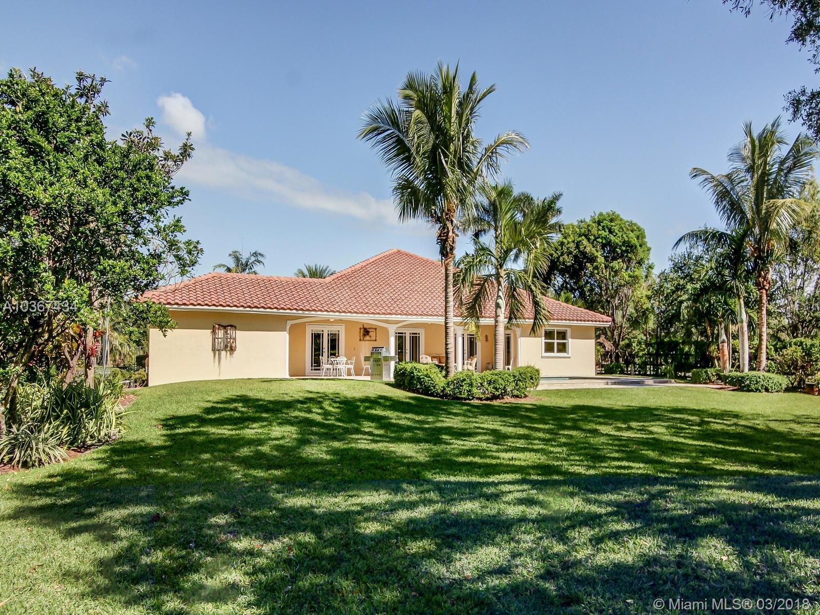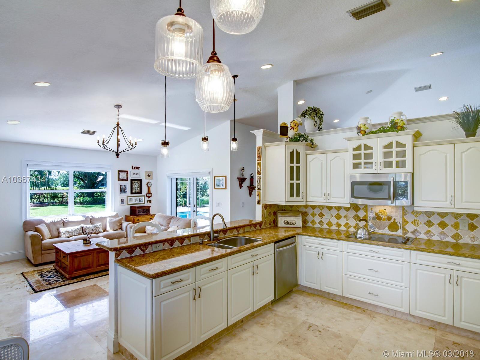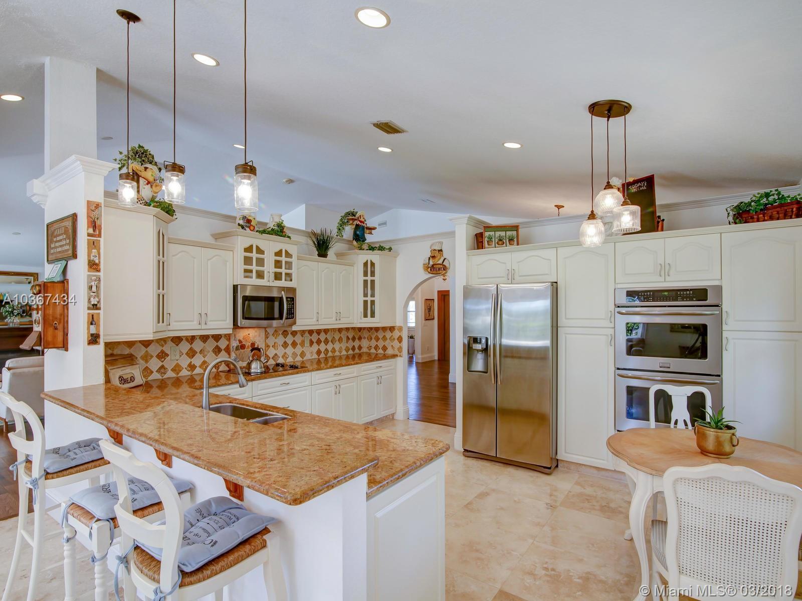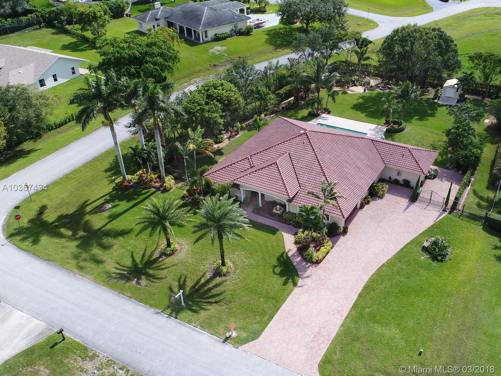 Country splendor, custom remodel in 2007 including roof, kitchen, bathrooms, floors, driveway, dual zone A/C, stainless steel appliances and much more! Home sits on manicured .87 acre corner fenced lot with A+ schools all located towards the end of the community, limiting traffic. A split floorplan 5 bd, 3.5 bth w/2 masters, formal dining, eat-in kitchen, living rm, family rm & Pool great for entertaining, This magnificent house has been home to current family for past 14 yrs, where their children have played, grown up & gotten married. Surrounded by SW Ranches, this equestrian friendly community has space for your boat, RV, plenty parking for guests on newly paved driveway.* Yearly HOA $250. Gated access thru Griffin-207th Terr via Call-Box.