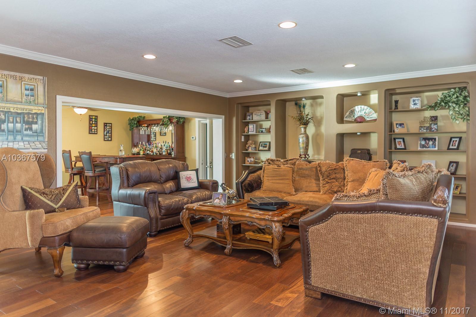 One of the simplest pleasures is to come home! Featuring a welcoming open floor plan, almost 2900 SQFT LIVING AREA, 13,000 SQFT LOT and PREFERRED HOLLYWOOD HILLS LOCATION. LARGE living area with beautiful wood floors, crown molding and recessed lights. Over 500 SQFT GREAT ROOM with lots of natural light and French doors providing access to the pool area. LARGE MASTER SUITE w/ dressing room and walk-in closet and built-ins. MASTER BATH w/ GRANITE dual sink cabinet, TRAVERTINE, frameless shower doors and JACUZZI. In addition, 10 cars driveway, 2nd master bedroom and bath, lots of closet space, IMPACT WINDOWS AND DOORS, 2 zone central air, salt water pool, 2017 gas water heater, mosquito control system, 2017 roof, 2016 septic system and termite warranty. A PROUD STATEMENT OF YOUR ACHIEVEMENT