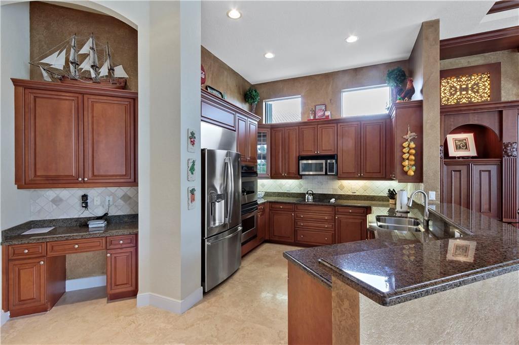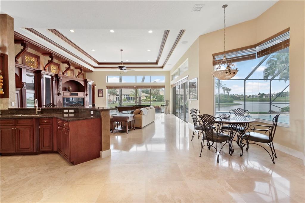 BEAUTIFUL HOME W/BREATHTAKING WATER & GOLF VIEWS! NO EXPENSE SPARED! PILLARS, W/SEPARATE LIVING ROOM. EXTENDED FAMILY RM OPEN CONCEPT KITCHEN AREA. MARBLE FLOORS, STUNING ENTRANCE W/ROD IRON DISPLAY LOOKING INTO GORGEOUS FORMAL DINING ROOM, RT KITCHEN W/DOUBLE OVEN, NEW SS REFRIG & DISHWASHER, GRANITE, CUSTOM WOOD CABINETS. HUGE MASTER BEDRM W/2 WALK IN CLOSETS W/BUILT INS. NEW HOT WATER HEATER & HURRICAN SHUTTERS. SOARING CEILINGS W/COFFERED DESIGNS . HEATED POOL & JACUZZI CUSTOM WOOD BUILT IN WALL UNIT