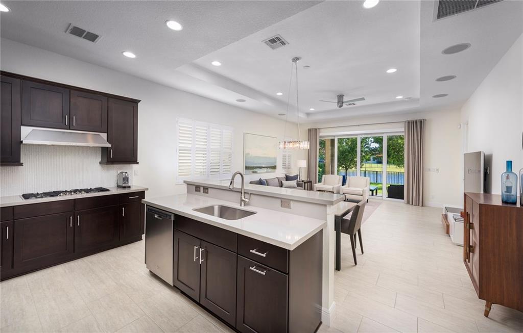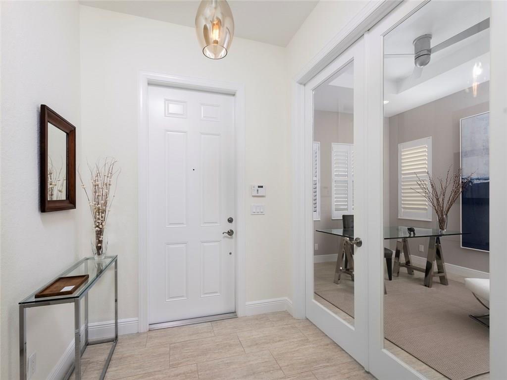 This is A 10+ Pristine 3 Bedroom + formal dining room/living Room or Den/office. Built 2013, all hurricane impact windows & doors, Gorgeous porcelain tile throughout the main area & new wood flooring in all bedrooms. Plantation shutters, wood blinds & new Linen draperies. New light fixtures, baths upgraded with new fixtures & stone countertops, beautiful landscaping, electronic retractable patio screen for enjoying the out of doors in all conditions. May be sold with furnishings for the discerning buyer.