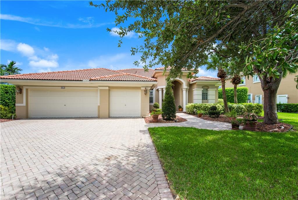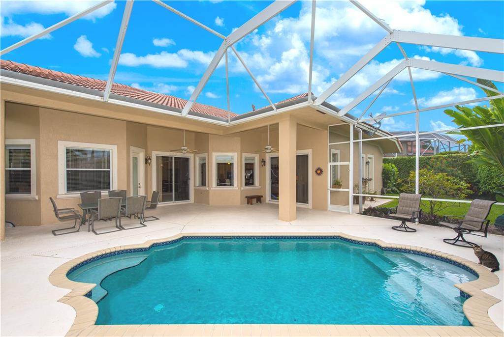 Immaculately kept, lake & pool estate. Magnificent views, natural light throughout, private & tranquil backyard, oversized screened patio, triple-split floorplan, 12' ceilings, tile in social areas, carpet in bdrm, kitchen w/42" wood cabinets, ss appl, spacious mstr suite w/sitting area, his-n-hers walk-in closets, soaking tub. Oversized water lot, oversized pavered driveway for guests. Newer pool pump & hot water heater. Hurricane panels. Gated community with low HOA fees. Close to parks & great schools.