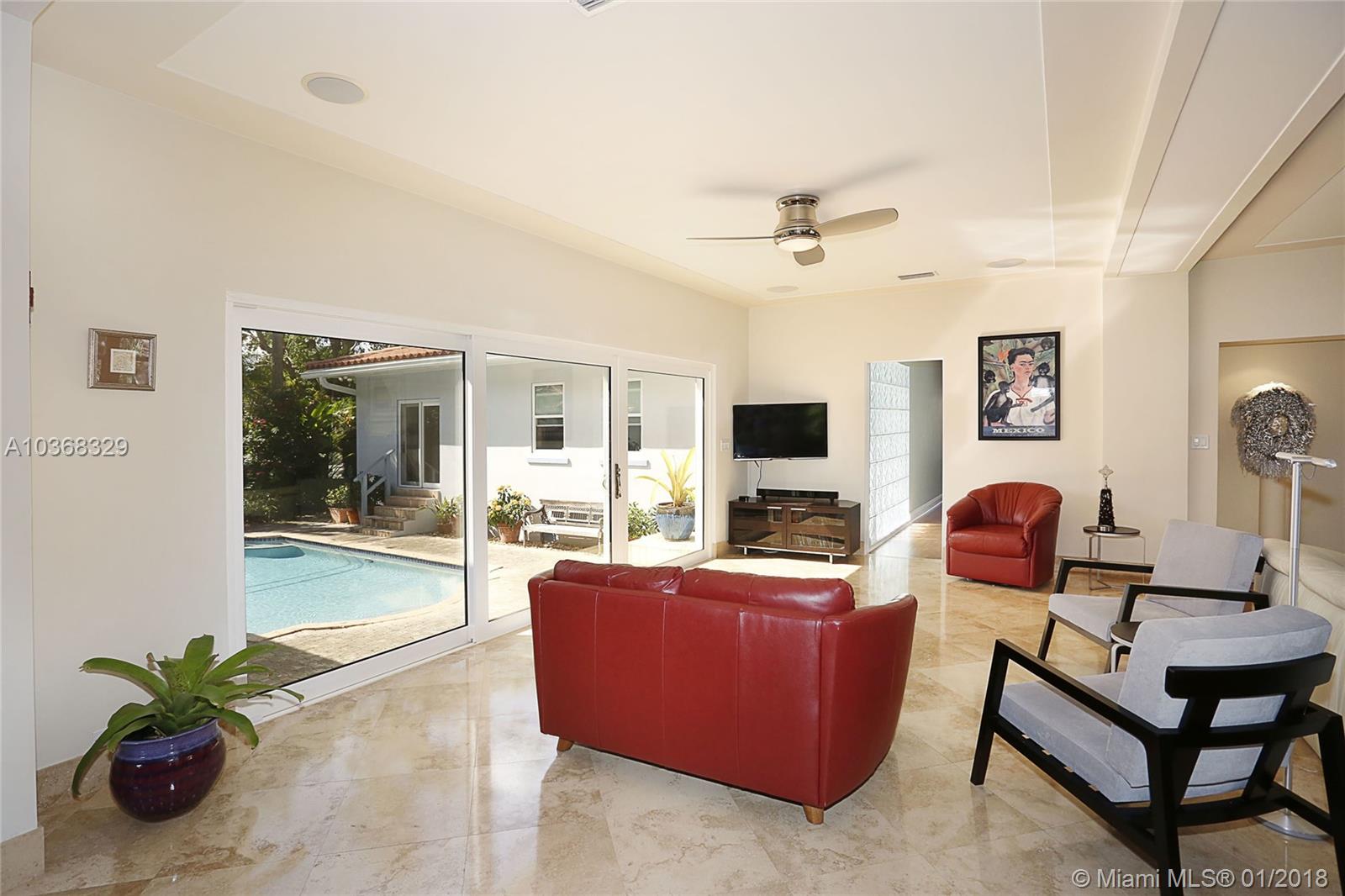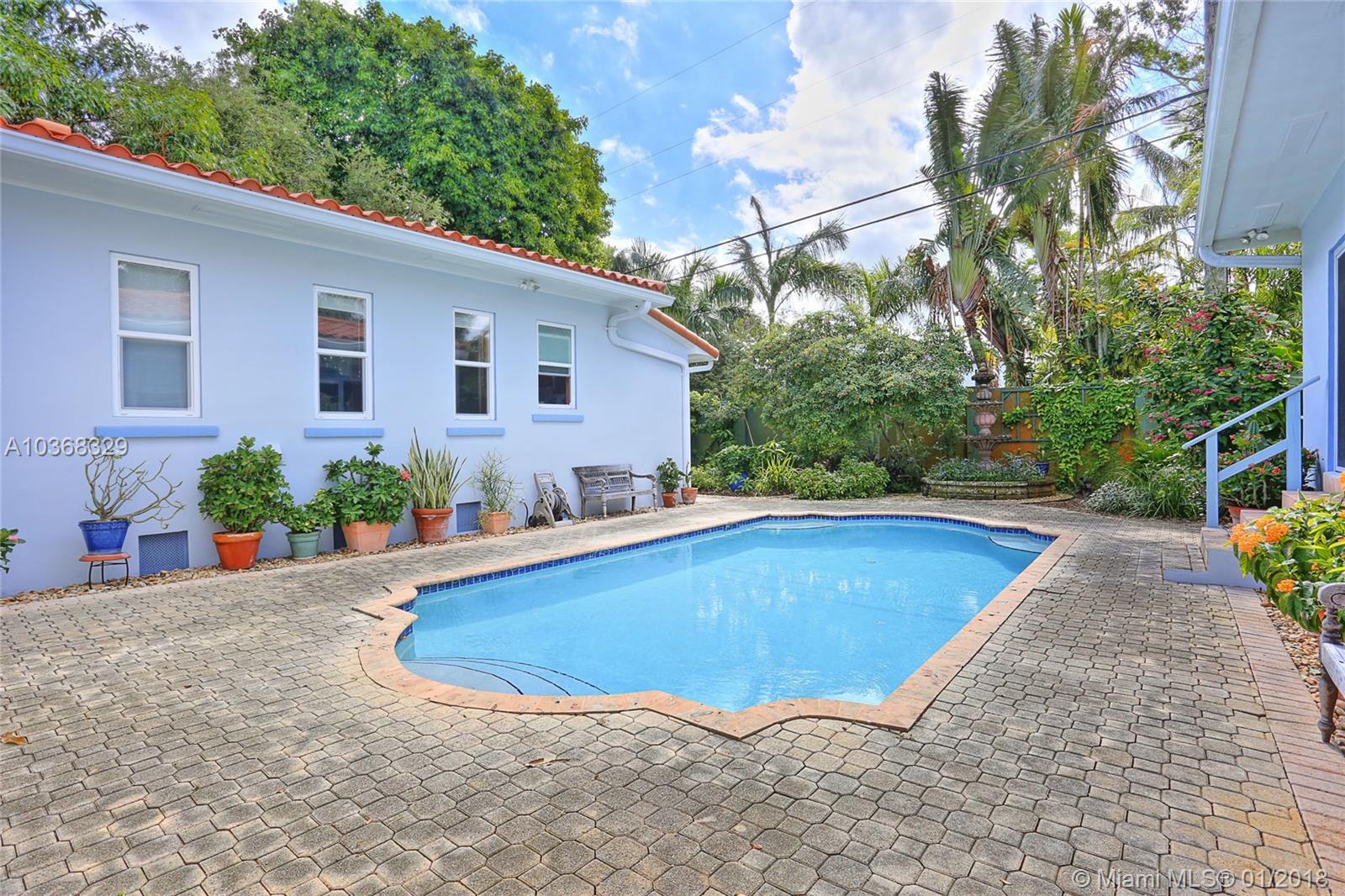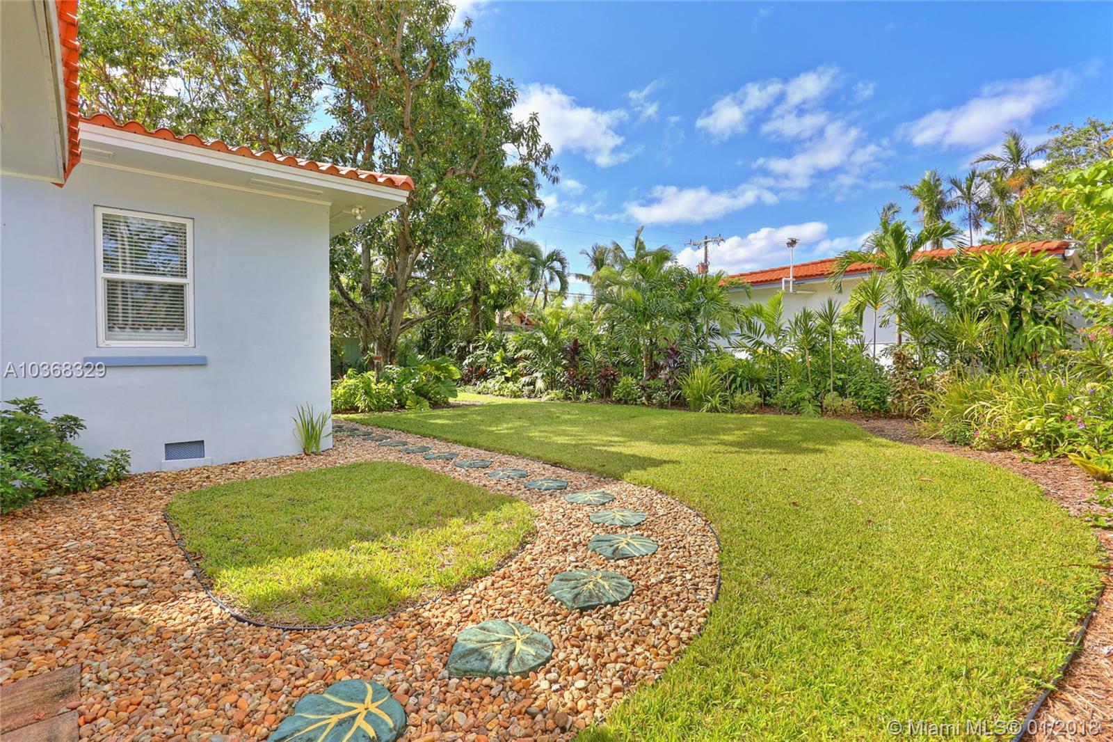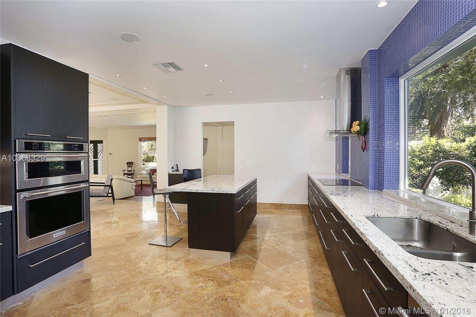 Beautifully remodeled 3,307 sf MIMO gem located on a 16,200 sf (150'wide x 108' deep) lot in gated Morningside. This spacious 4 bedroom pool home has an in-suite bathroom for every bedroom (4.5 total bathrooms), plus an office, laundry room, library & huge 2 car garage w/ storage loft. Additional features include: private courtyard, salt system pool, new impact windows & doors, 4 year old barrel tile roof, exquisite new custom chefs kitchen w/ an island & picture windows w/ panoramic views of the east garden as well as a butlers pantry, solid oak & travertine floors, volume ceilings, fireplace, solar hot water heater, large east & west yards w/ tropical gardens, rare palms & mango trees. Live the lifestyle! You deserve it! No flood insurance required!!! Easy to show.