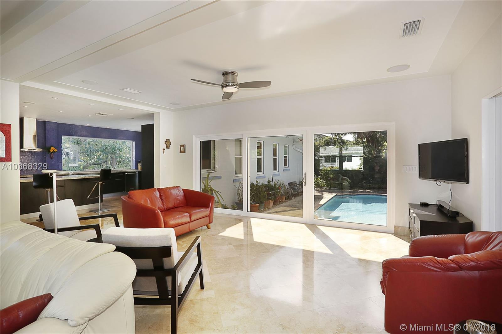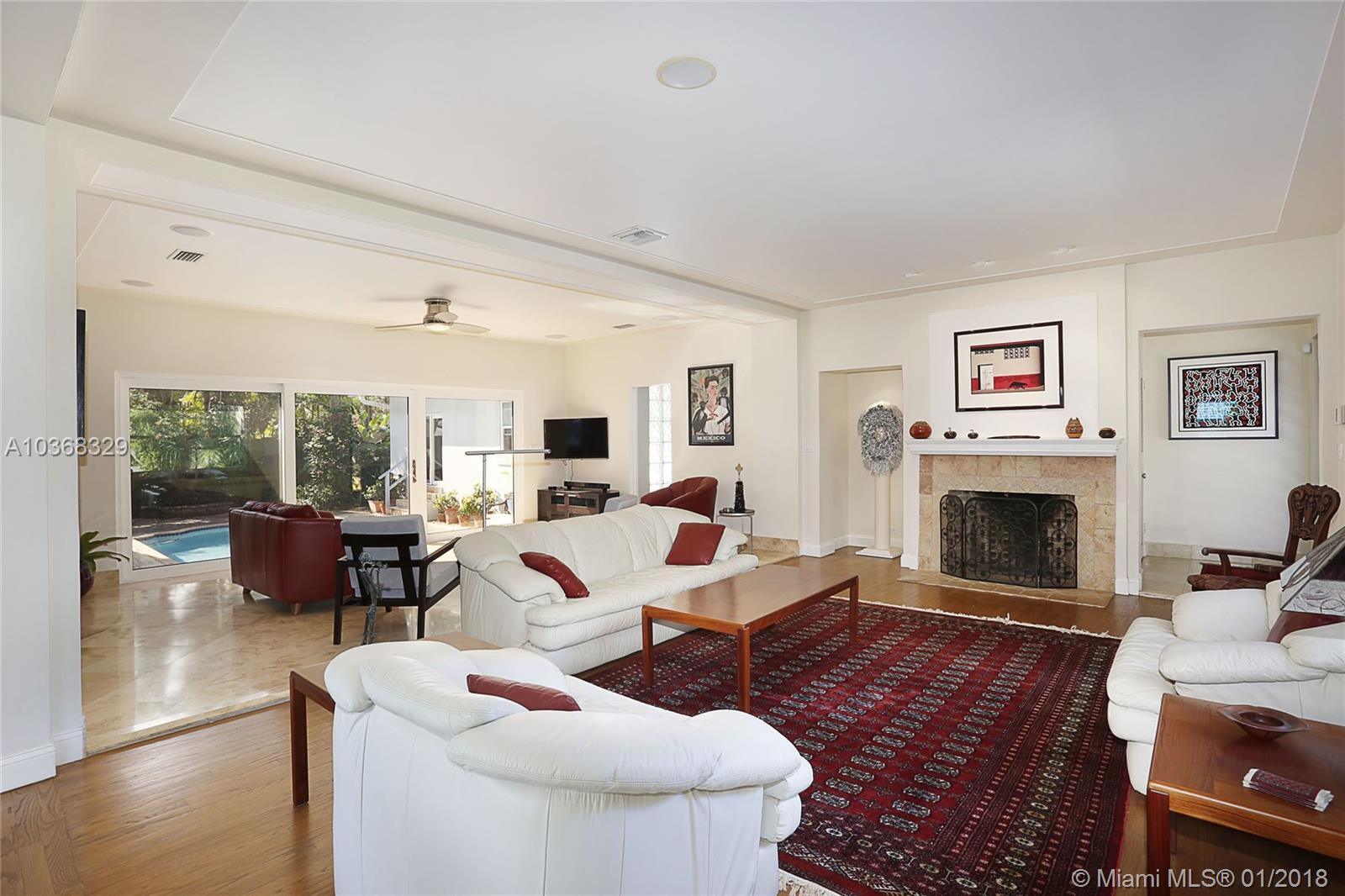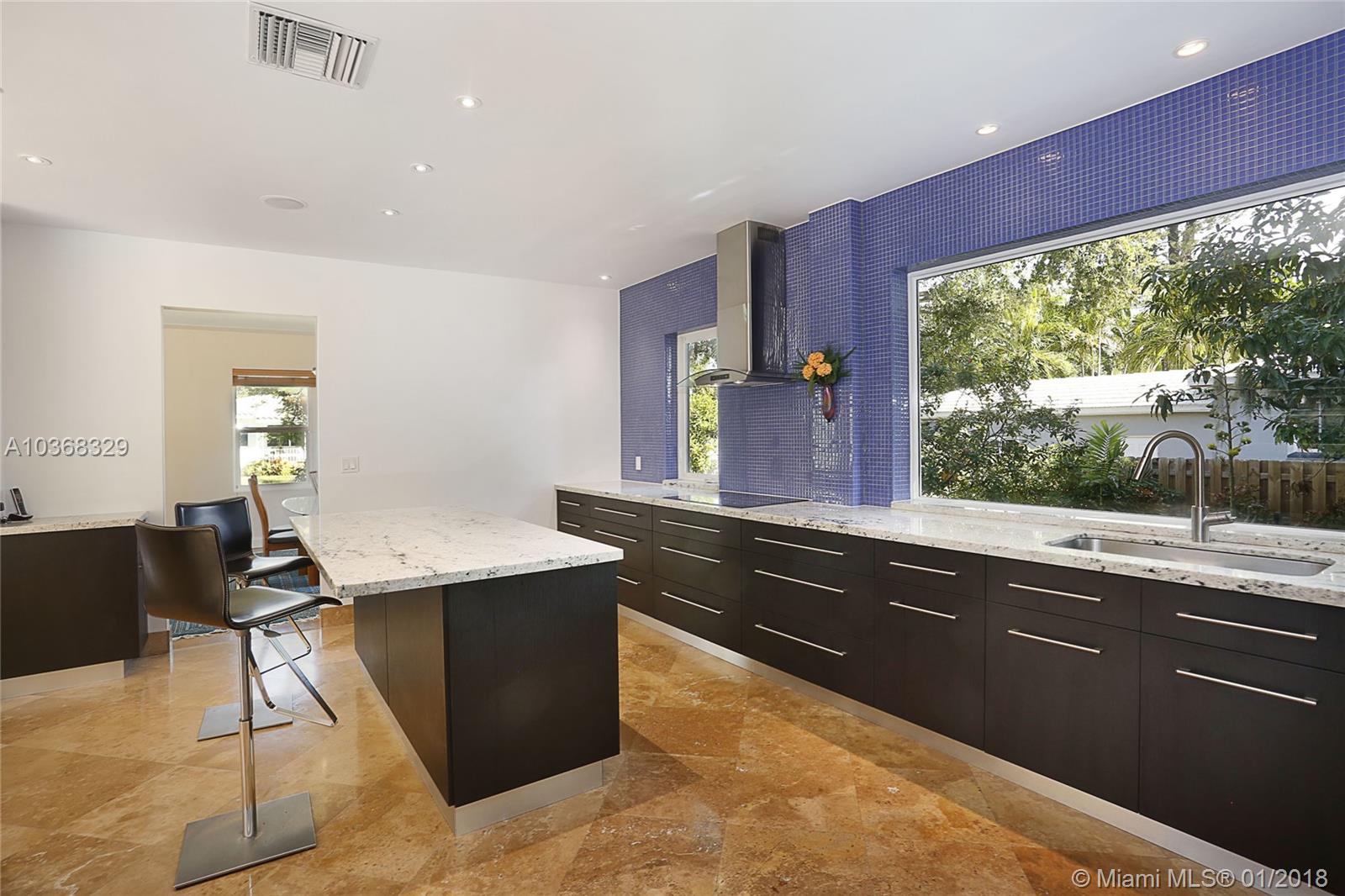 Beautifully remodeled 3,307 sf MIMO gem located on a 16,200 sf (150'wide x 108' deep) lot in gated Morningside. This spacious 4 bedroom pool home has an in-suite bathroom for every bedroom (4.5 total bathrooms), plus an office, laundry room, library & huge 2 car garage w/ storage loft. Additional features include: private courtyard, salt system pool, new impact windows & doors, 4 year old barrel tile roof, exquisite new custom chefs kitchen w/ an island & picture windows w/ panoramic views of the east garden as well as a butlers pantry, solid oak & travertine floors, volume ceilings, fireplace, solar hot water heater, large east & west yards w/ tropical gardens, rare palms & mango trees. Live the lifestyle! You deserve it! No flood insurance required!!! Easy to show.