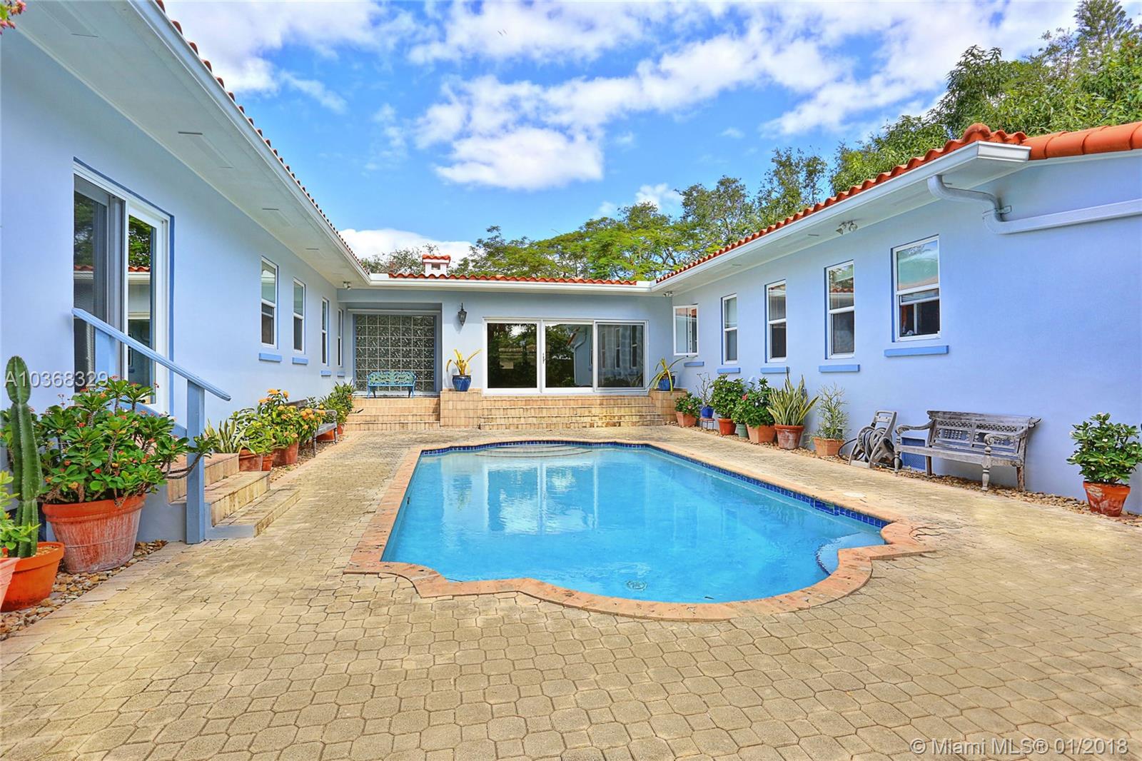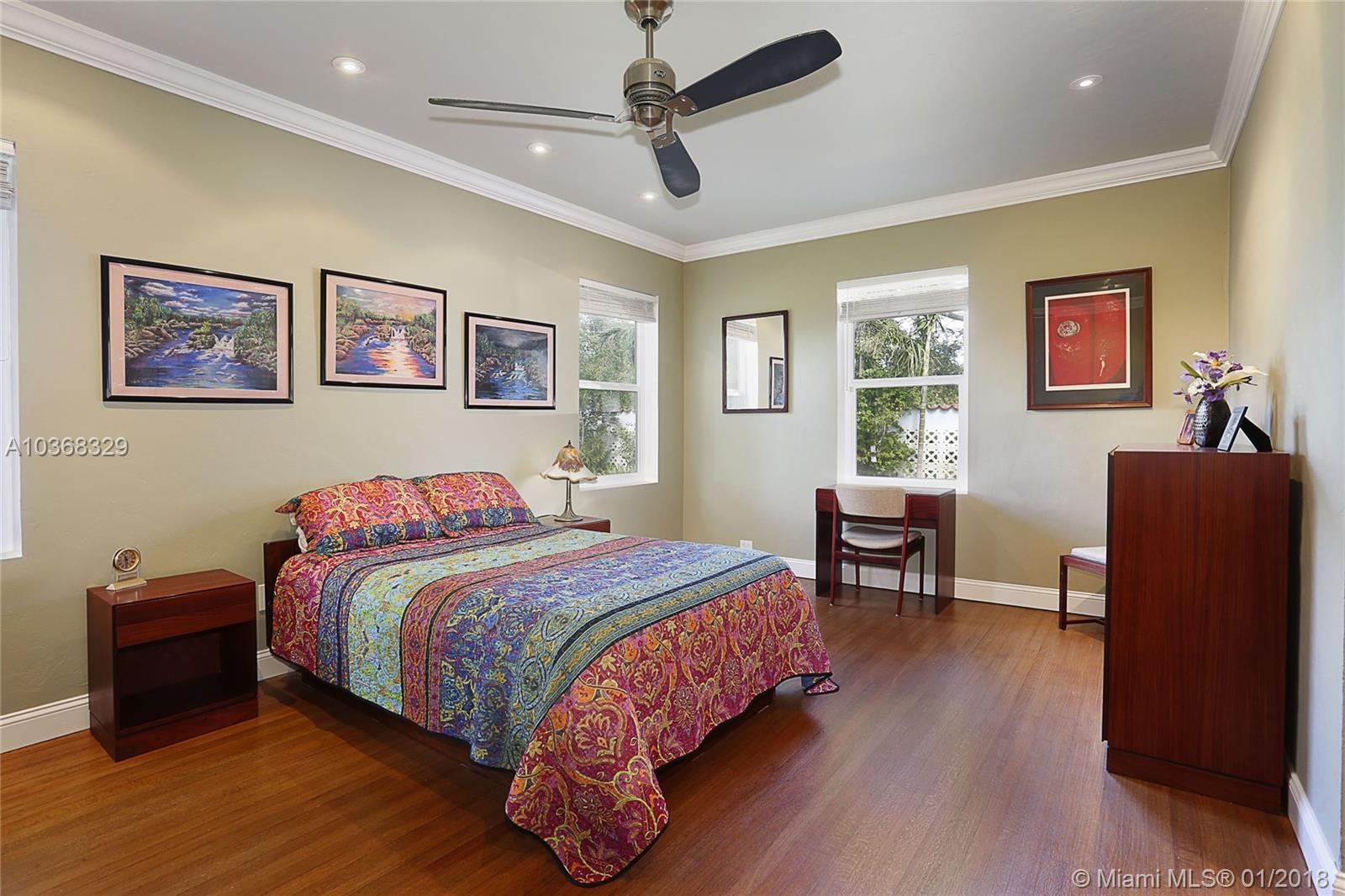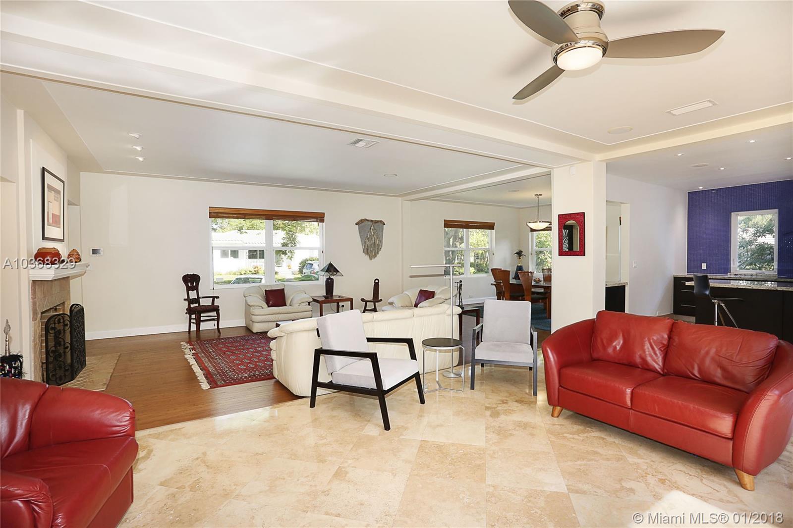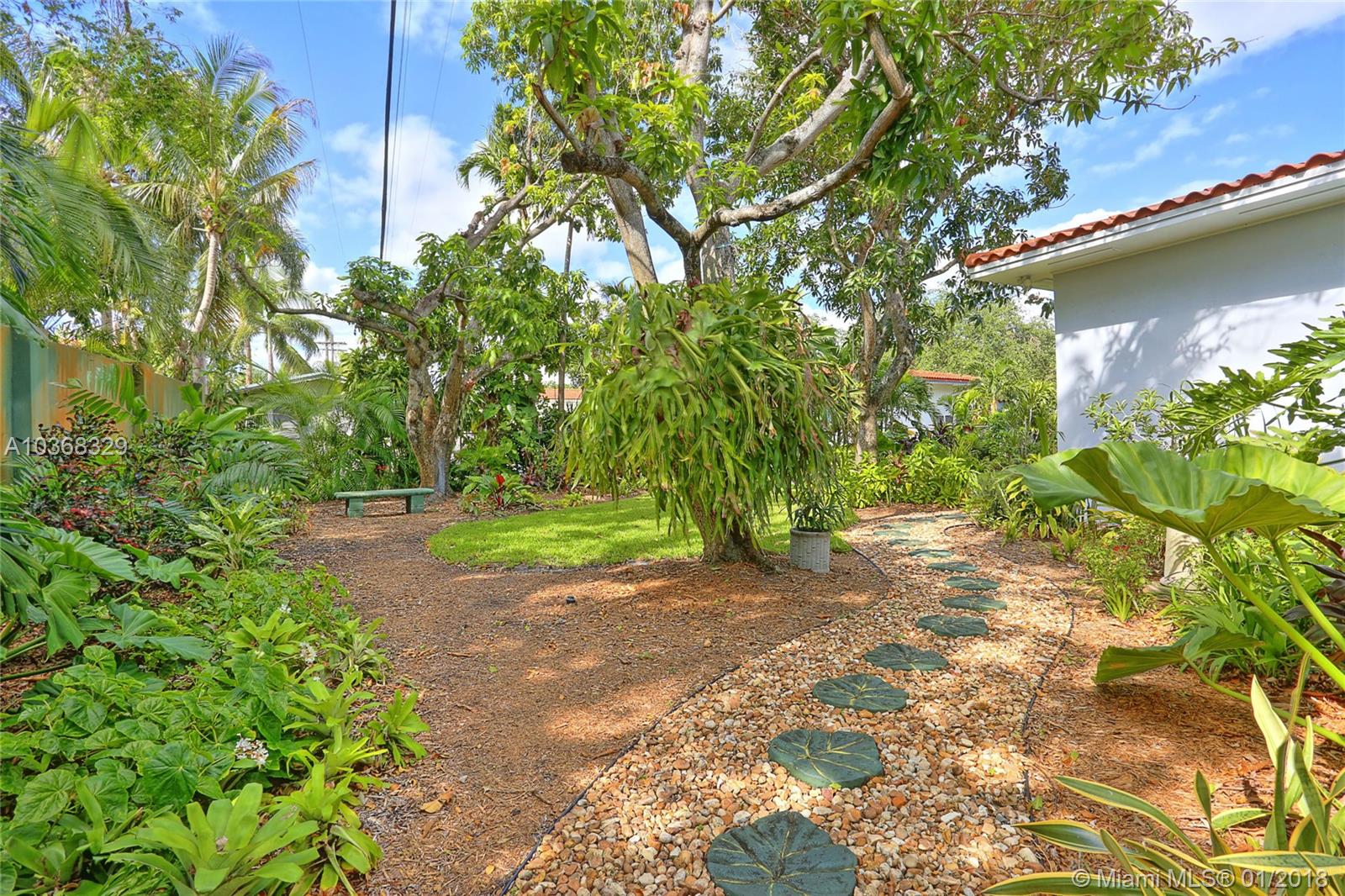 Beautifully remodeled 3,307 sf MIMO gem located on a 16,200 sf (150'wide x 108' deep) lot in gated Morningside. This spacious 4 bedroom pool home has an in-suite bathroom for every bedroom (4.5 total bathrooms), plus an office, laundry room, library & huge 2 car garage w/ storage loft. Additional features include: private courtyard, salt system pool, new impact windows & doors, 4 year old barrel tile roof, exquisite new custom chefs kitchen w/ an island & picture windows w/ panoramic views of the east garden as well as a butlers pantry, solid oak & travertine floors, volume ceilings, fireplace, solar hot water heater, large east & west yards w/ tropical gardens, rare palms & mango trees. Live the lifestyle! You deserve it! No flood insurance required!!! Easy to show.
