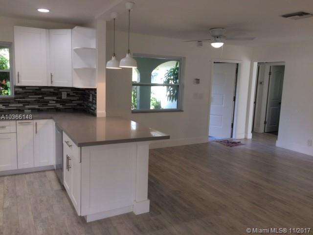 Beautiful, newly renovated 3 bedroom 2 bath single family home, ideally located in a lush and private dead end in the Oak River area. The large French doors and impact windows allow for lots of natural light to flood every room of the house, creating a bright and welcoming atmosphere. Light floors, new modern white kitchen with grey quartz countertop and all new stainless steel appliances from Whirlpool. New washer and dryer. Screened patio for relaxation and/or time with friends and family. Oversized two-car garage with brand new garage door. Ample parking outside. The property has a very large garden, ideal for a pool. Private and quiet, yet close to major highways and downtown Fort Lauderdale, this house is a must see and perfect for first time homeowners. You will fall in love!!
