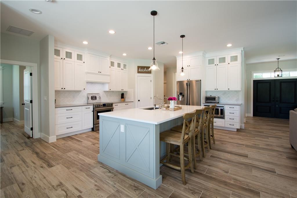 Gorgeous modern farmhouse custom home on 1 acre! 4 bed/2.5 bath plus office/small 5th bedroom. 3800 total sq ft, standing seam metal roof, wood-look tile/porcelain marble floors, huge fenced in yard, 2 master walk in closets, all high impact windows and doors with oversized insulated garage door, electric fireplace, all LED lighting inside/out, spray foam insulation in attic/garage, custom built vent hood, deep well for house and separate shallow well for sprinklers, and large patio perfect for grilling!