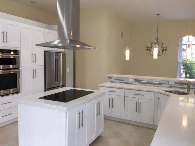 Super high end total remodel. An entertainer's dream house. Large new open gourmet kitchen with wet bar. Tropical, cascading waterfall by the front door. White Italian marble in the master bath suite transports you to a luxurious resort. Bedrooms adorned with dark hardwood floors. High cathedral ceilings. Pool and Spa. Forget the months of labor trying to bring your artistic vision to life. Color, concept, elegant and sophisticated design and function have all already been done for you. PGA golf course.
