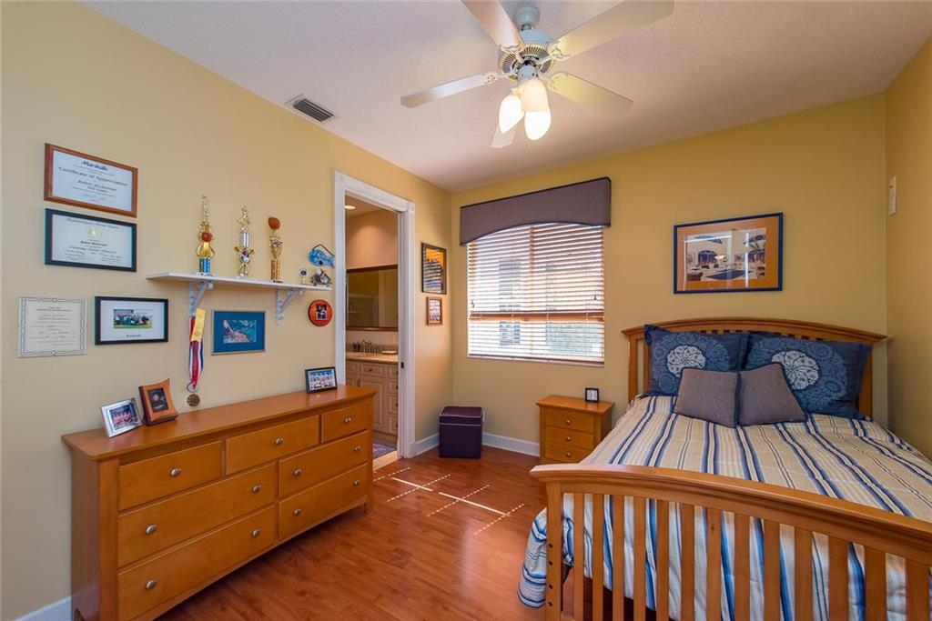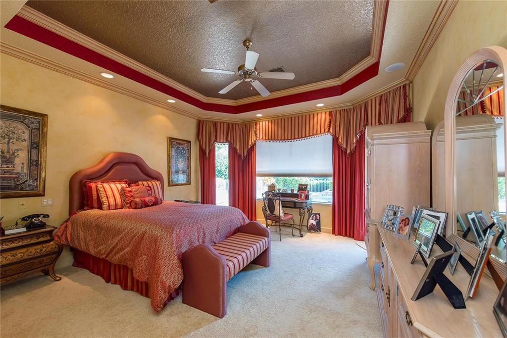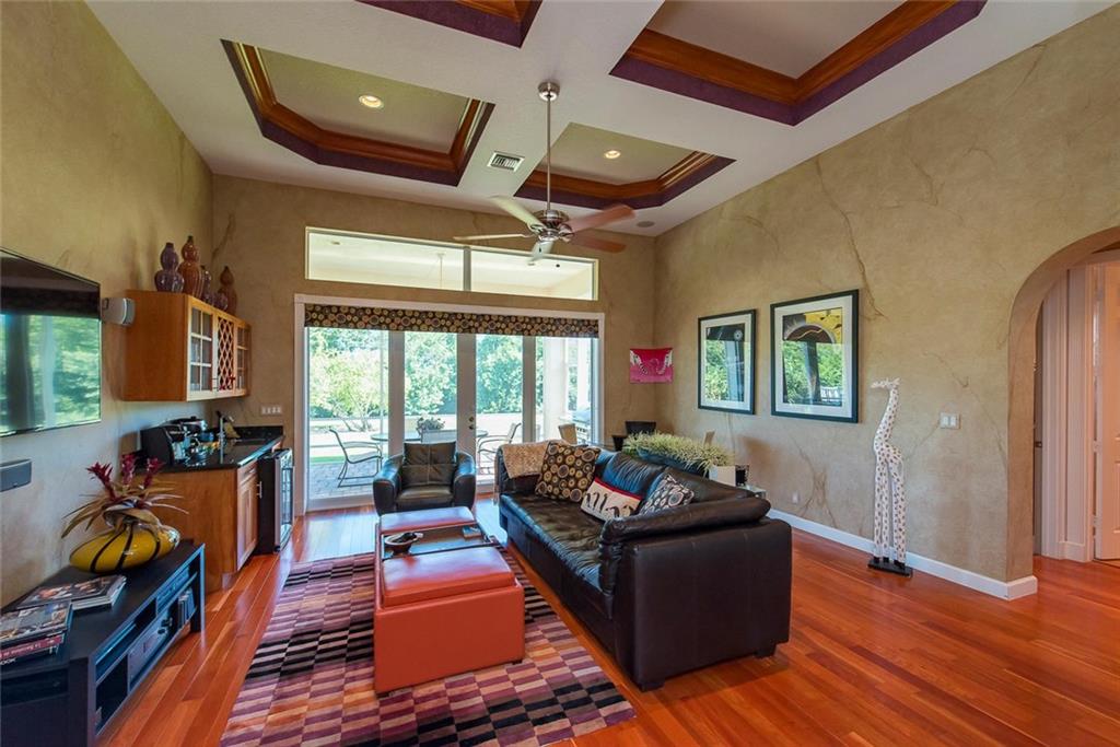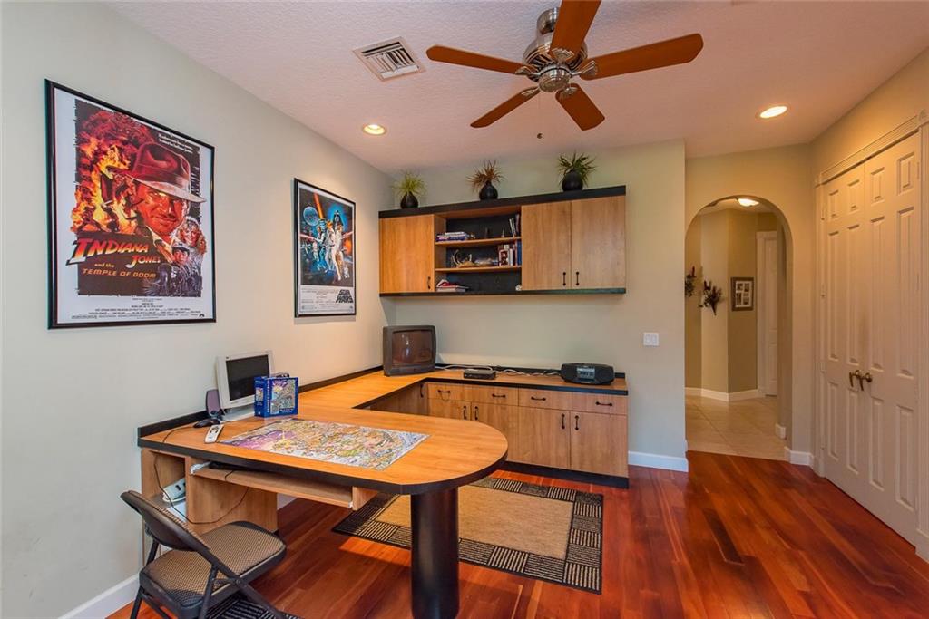 This .92 acre estate meets all your needs! The desirable triple split plan incl: elegant master suite adjacent to custom office; 2nd wing w/2 bdrms, sharing bath w/double vanity; 3rd split offers 2 bedrms, each w/private baths! Between both bedroom wings is a private, custom study area for kids & spacious recreation room w/wetbar! (This area PERFECT for guesthouse, playrm or man cave!). Gorgeous kitchen & baths! Numerous impact windows & drs. Fenced patio & beautiful pool w/waterfall, plus screened lanai!