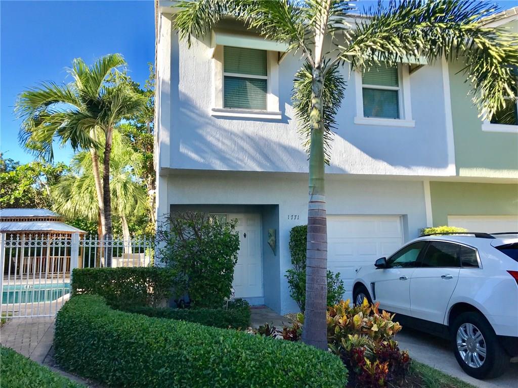 EXTREMELY TASTEFUL CORNER WATERFRONT TOWN HOME. ENTER & IMMEDIATELY SEE THE RIVER & TROPICAL MANGROVES w/ MANATEES. WALK TO THE ACTION ON WILTON DR. KITCHEN w/ GRANITE BREAKFAST BAR & COUNTER TOPS & GLASS TILE BACK SPLASH, 18' STONE TILE FLOORS ON 1st LEVEL & STUNNING HI GLOSS BRAZILIAN CHERRY WOOD FLOORS ON 2nd FLOOR & STAIRCASE. VERY PRIVATE LUSH REAR PATIO & YARD w/ DIRECT ACCESS TO POOL NEXT DOOR. LG MASTER w/ BALCONY OVER LOOKING WATER. w/ WALK IN CLOSET & DUAL SINKS & DUAL MARBLE SHOWER.