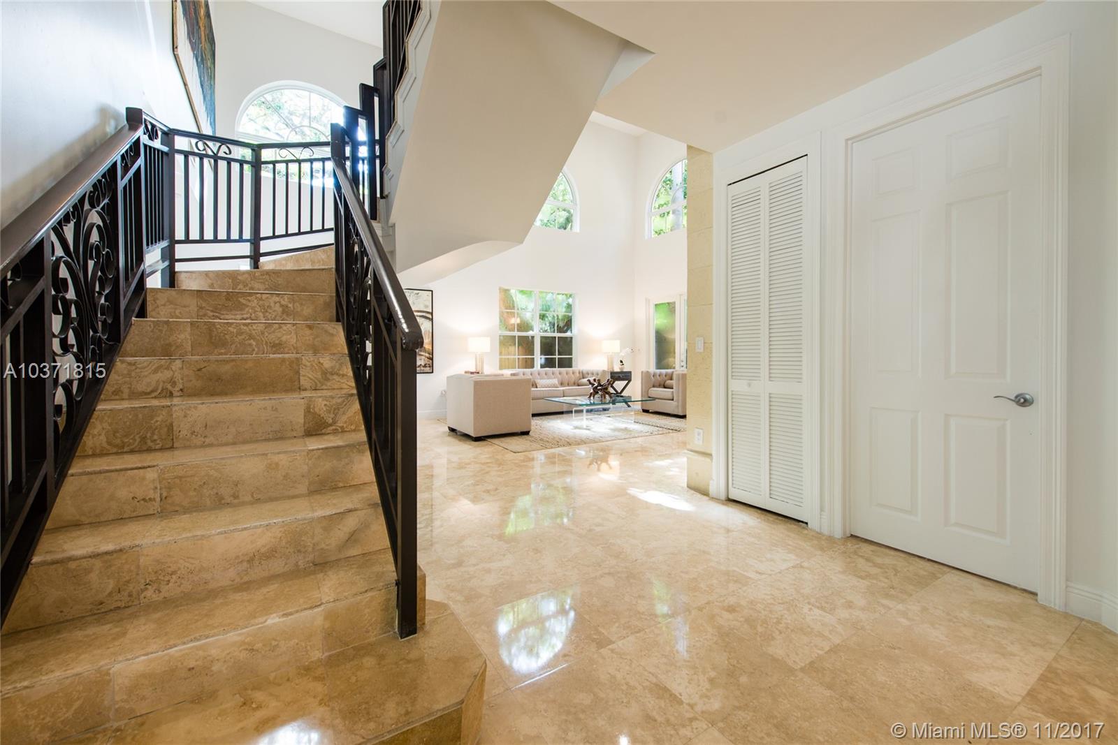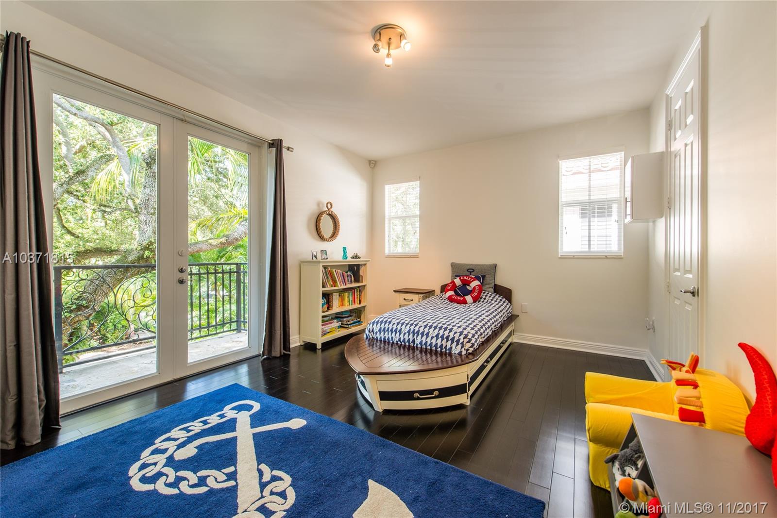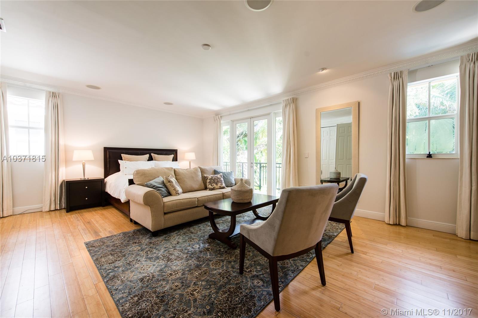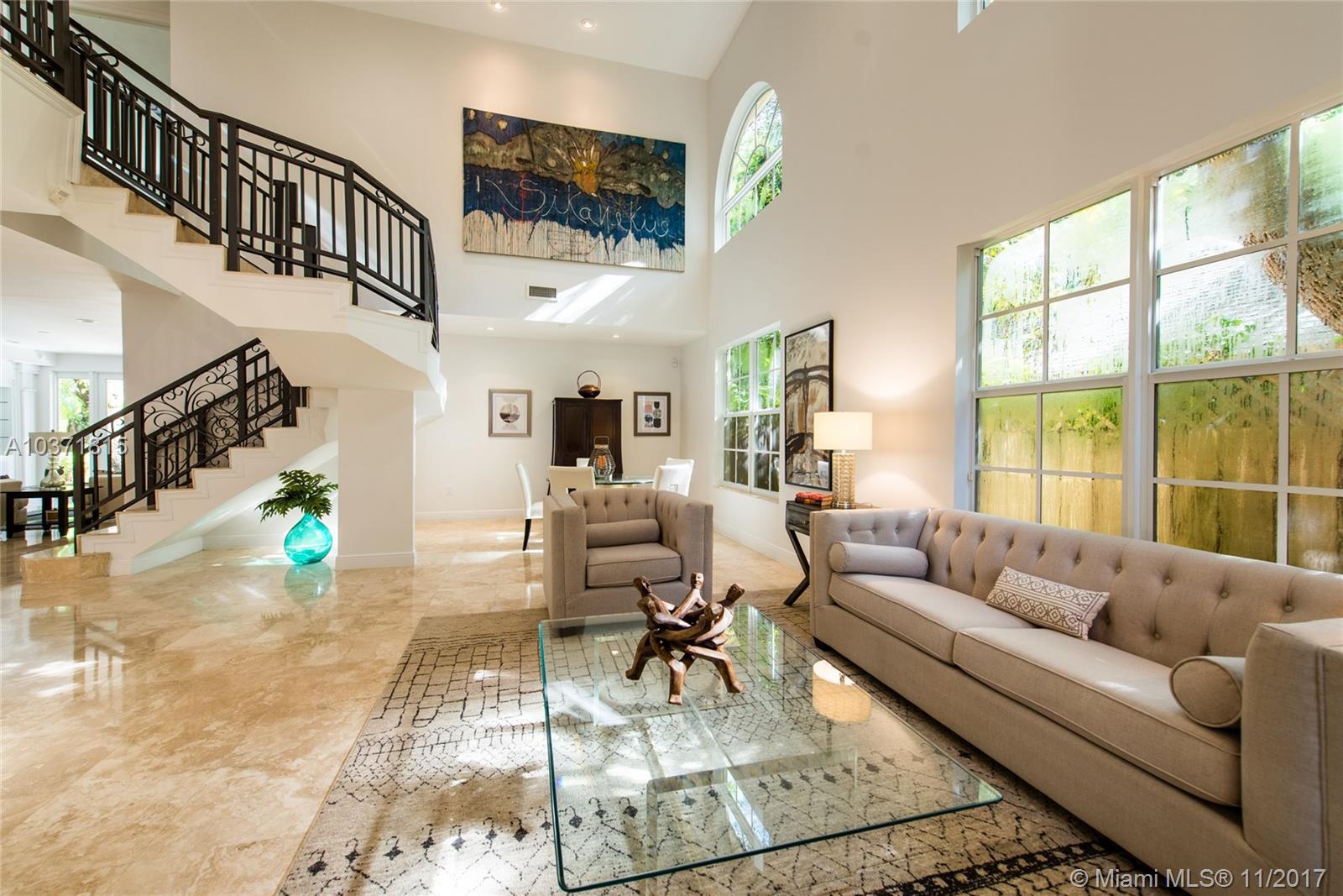 Lovely European-inspired home on a quiet, winding street in lush South Coconut Grove. A blend of classic and contemporary architectural features with light-filled living spaces that overlook the expansive garden with built-in grill area & pool. Custom kitchen with white wood cabinetry, granite countertops, stainless appliances and center island with seating. Double-height ceilings and clerestory windows in the formal living & dining room. Oversized master suite with sitting area and private balcony overlooking the tree-tops. Luxurious marble master bath with spa-tub & glass enclosed shower. Walk to the Grove village center’s galleries, boutiques, cafes and bayfront parks & marinas. Close to downtown, MIA, Coral Gables and the Beaches.