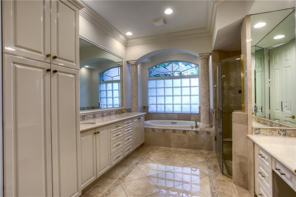 SPECTACULAR WATERFRONT PROPERTY WITH OVER 200 FT OF LAKE FRONTAGE AND AMAZING VIEWS! SOUGHT AFTER "INNER LOOP" LOCATION! WALK TO GATEHOUSE! CUSTOM ONE STORY RESIDENCE WITH LOTS OF ARCHITECTURAL DETAILS! HUGE CHEF'S KITCHEN WITH CENTER ISLAND! MARBLE FLOORING! 4 LARGE BEDROOMS EACH WITH THEIR OWN BATHS PLUS OFFICE/LIBRARY! MARBLE MASTER BATH! NEWLY PAINTED INTERIOR! OVER-SIZED PATIO WITH HEATED POOL AND SPA, BBQ AND DOMED SCREEN ENCLOSURE! FRESHLY LANDSCAPING! WHOLE HOUSE GENERATOR! A MUST TO SEE!