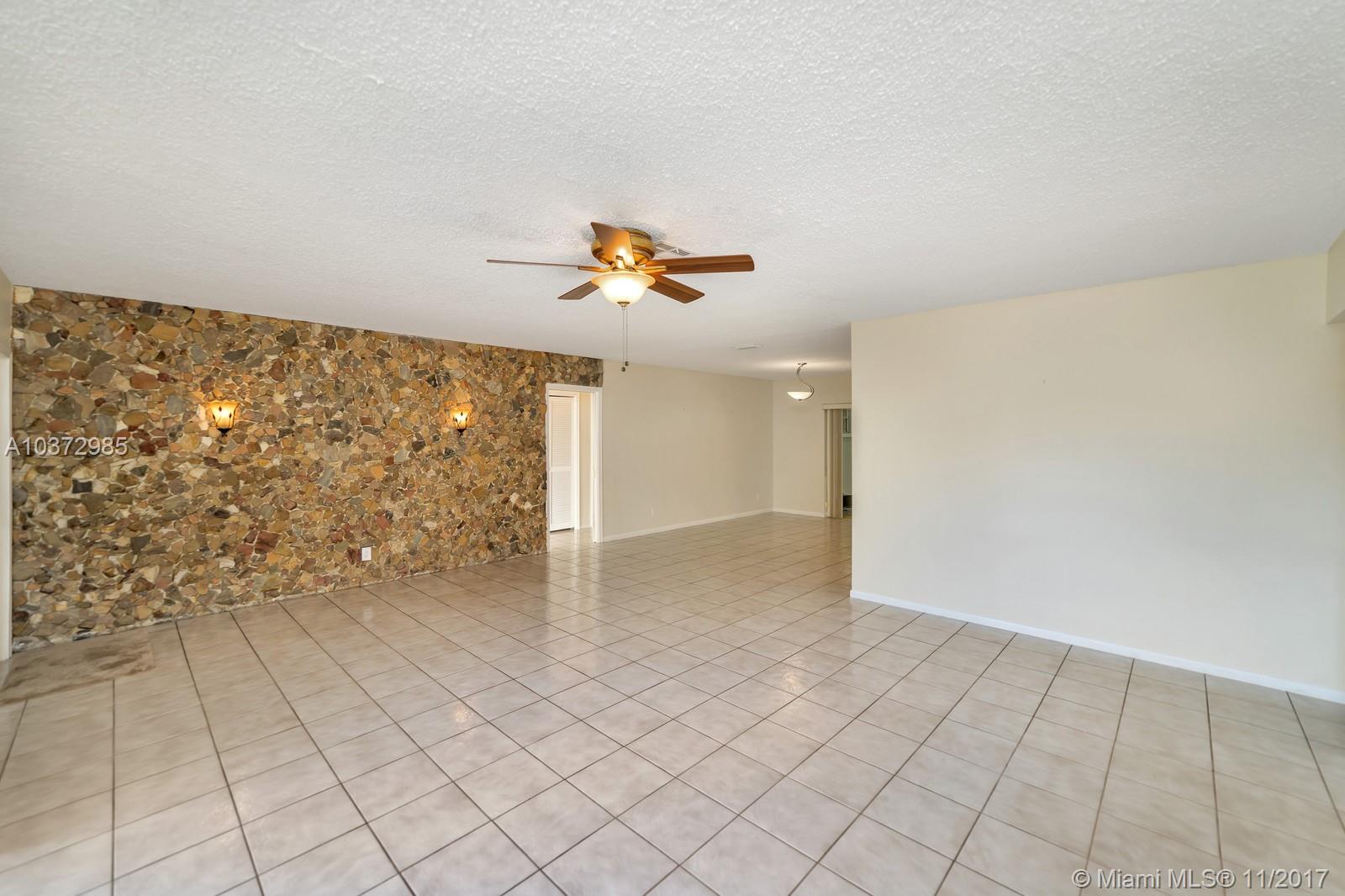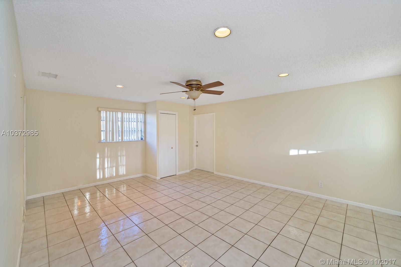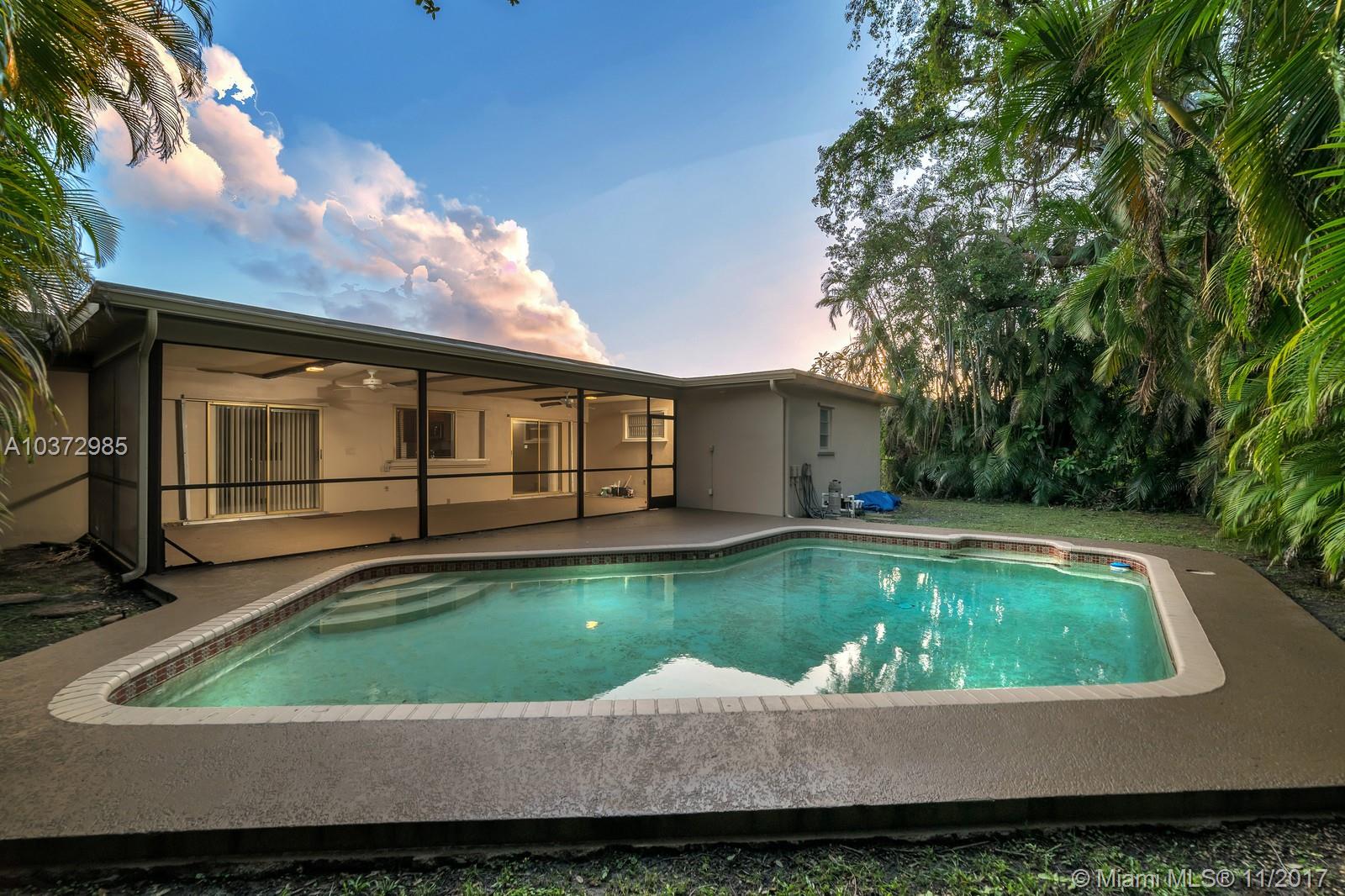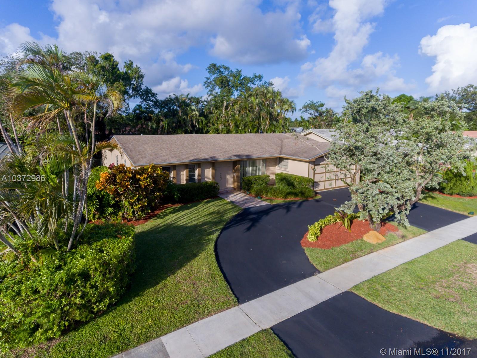 Great Family home in move in condition. Freshly pained inside and out. Lovely neutral tile floors throughout and wood flooring in bedrooms. Updated kitchen with granite counters and stainless steal appliances. Garage converted to large play room with 1/2 bath and storage area. Interior laundry room. Built in bar in family room. Huge screened patio overlooks open pool and private back yard. Walk to houses of worship and shopping center. Sold as-is with right to inspect. Hurricane shutters and security system.
