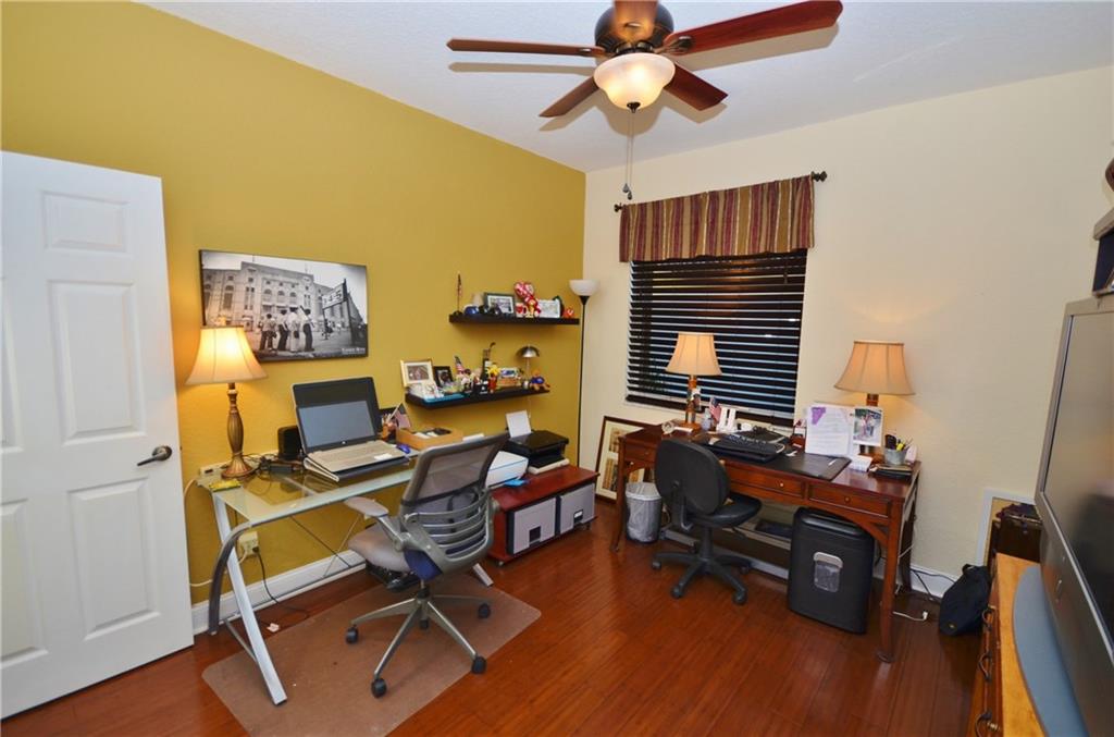 Wow!! Enter this expansive 5 bedrooms+ 6th for den or bedroom, full bath nearby, & 2 full sized master suites, with endless possibilities! From the gorgeous REAL WOOD flooring throughout, stunning totally renovated kitchen, with virtually every possible feature, upgraded baths & a grand wrought iron staircase. Custom closets in most bedrooms, recessed lighting, & epoxy garage floor, are only a few features. Travertine Patio & inviting pool & huge yard, & even accordion shutters! Guard gated & Rec Center