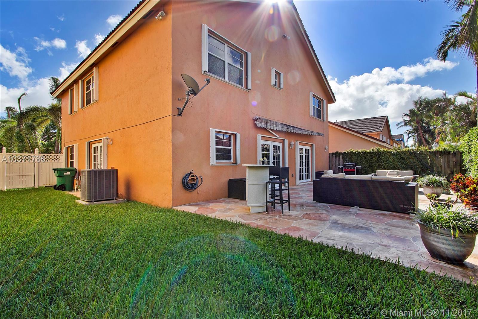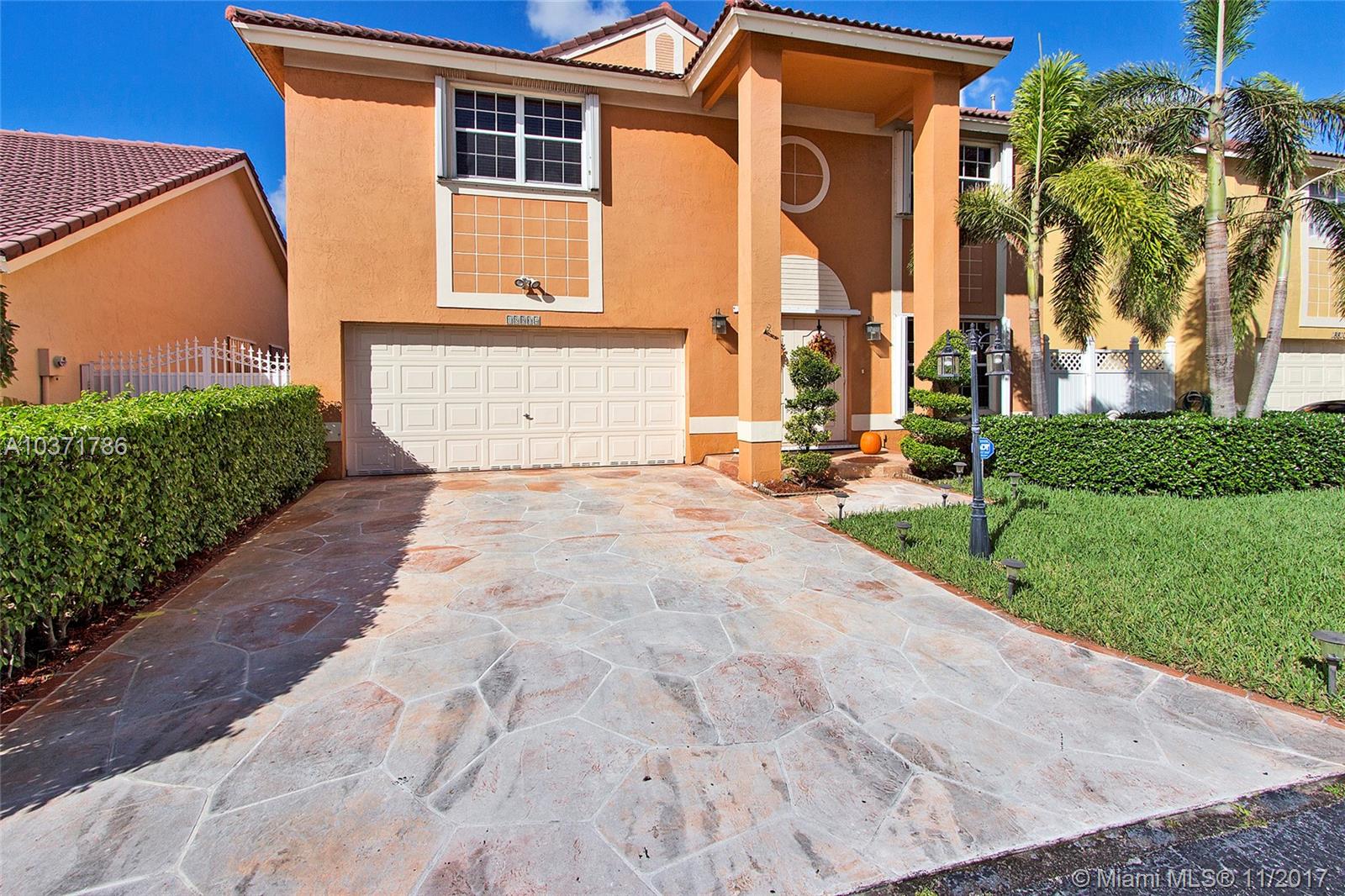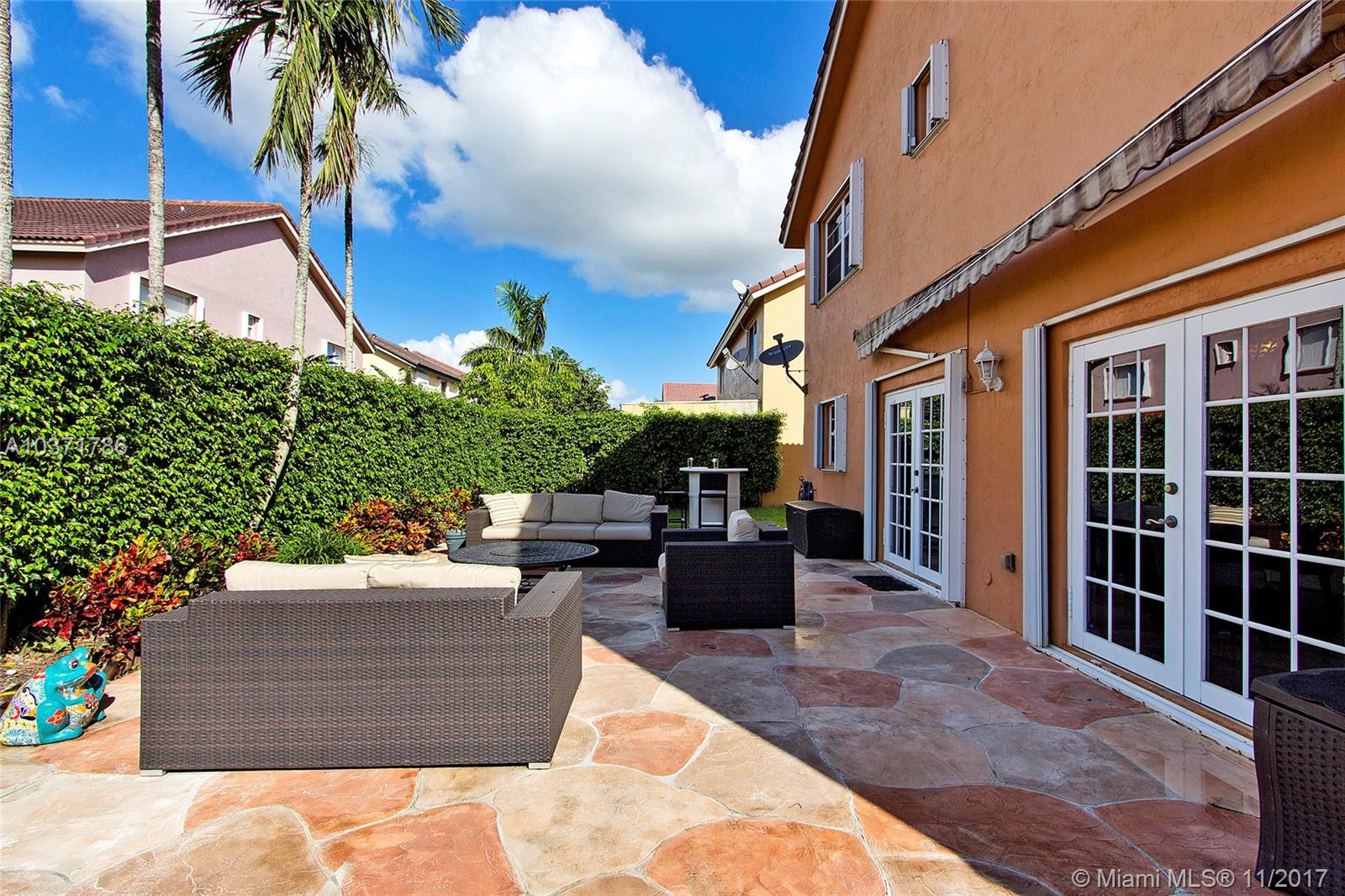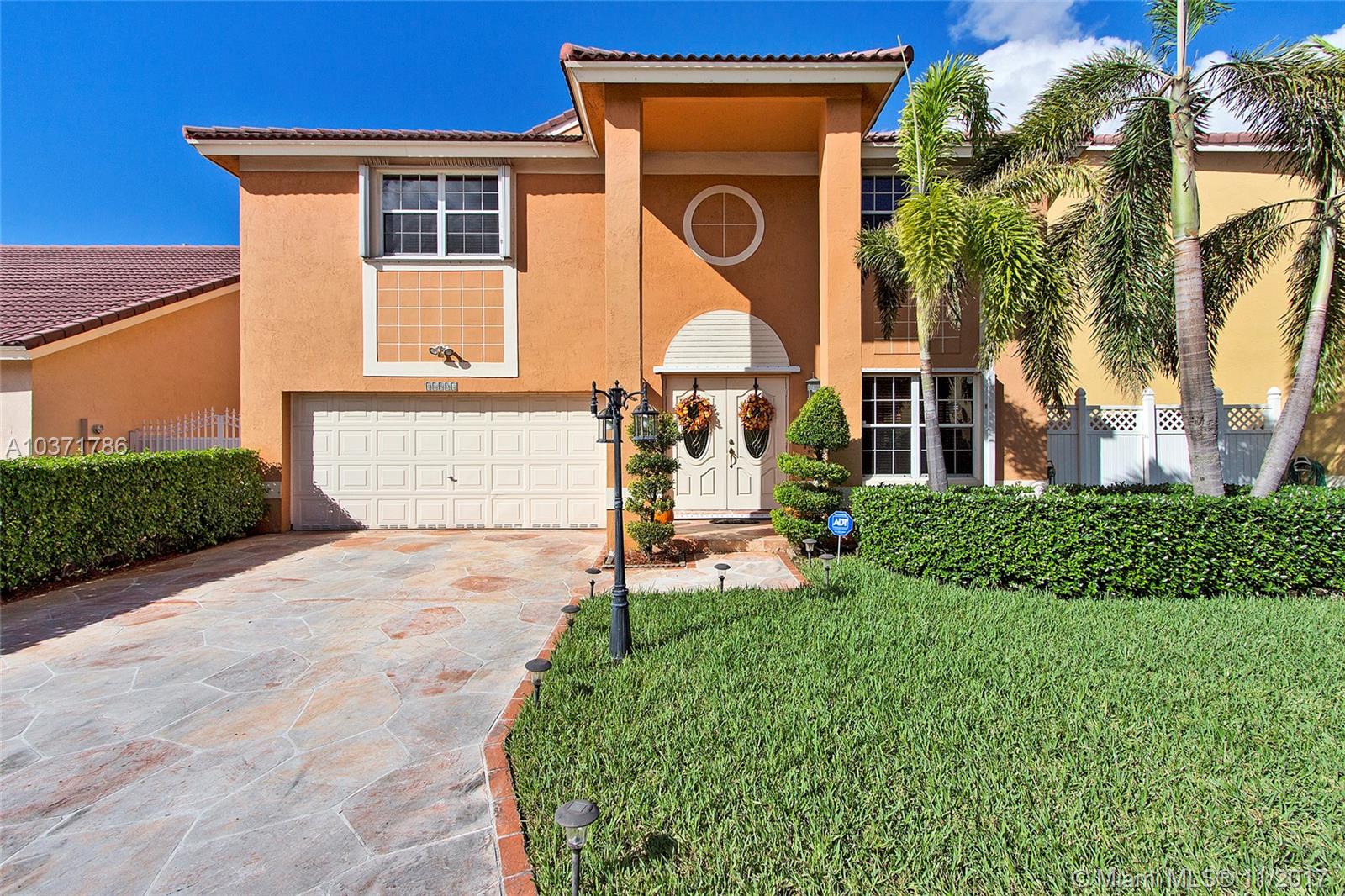 Wow! Stunning 5 Bed /2.5 Bath Single Family Home with 2 Car Garage Located Just North Of Miami Lakes. Beautiful Custom Kitchen with Island, Wood Cabinets, Granite Countertops and Stainless Steel Appliances. Large Open Floor Plan with Living, Dining, and Family Room that exits Through French Doors to Beautifully landscaped Fenced Back Yard Oasis. Master Suite Boasts Dual Custom Closets, New Bathroom w/Double Sinks, Travertine Tile, Roman Tub and Frameless Shower Enclosure. Newer A/C w/Warranty, Lots of Storage, Updated Bathrooms, Crown Molding, Wood Blinds, Laminate Floors, Accordion Shutters on All Openings and Shutters for Front Door. Indoor Laundry Room with Front loading Washer /Dryer. Overhead Storage in Garage. This 2 Story home is Largest Floor Plan in Development. Must See!