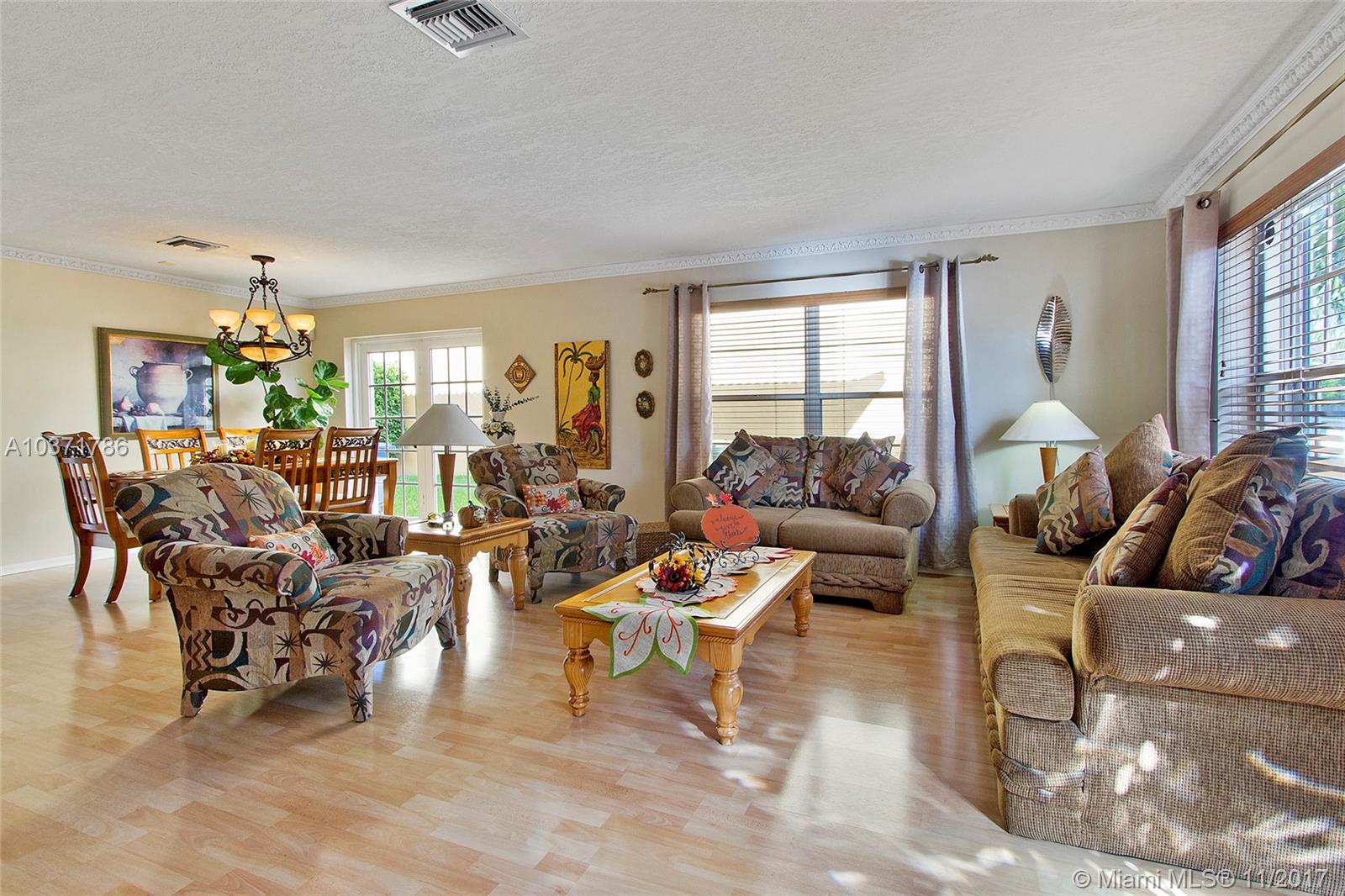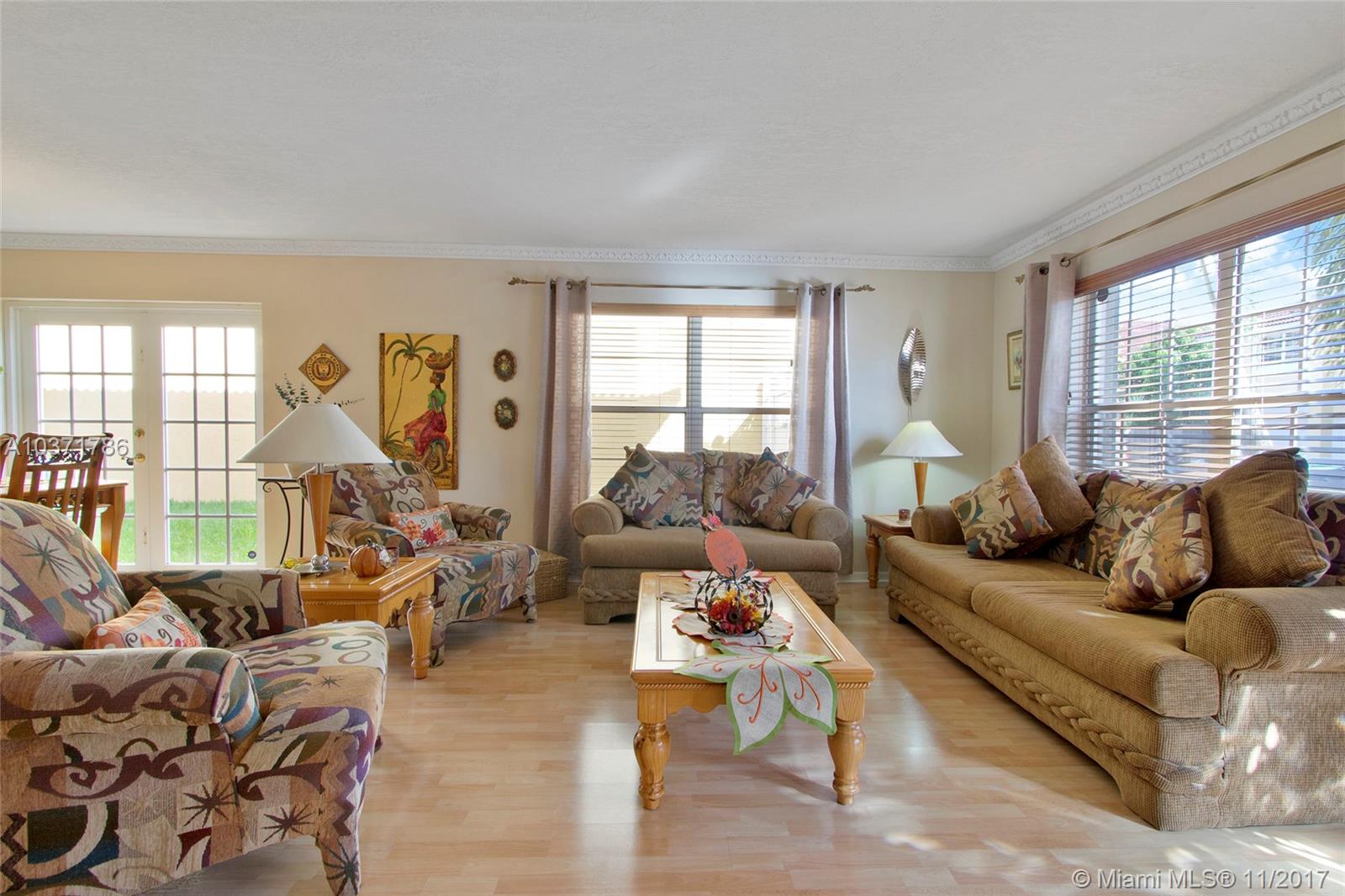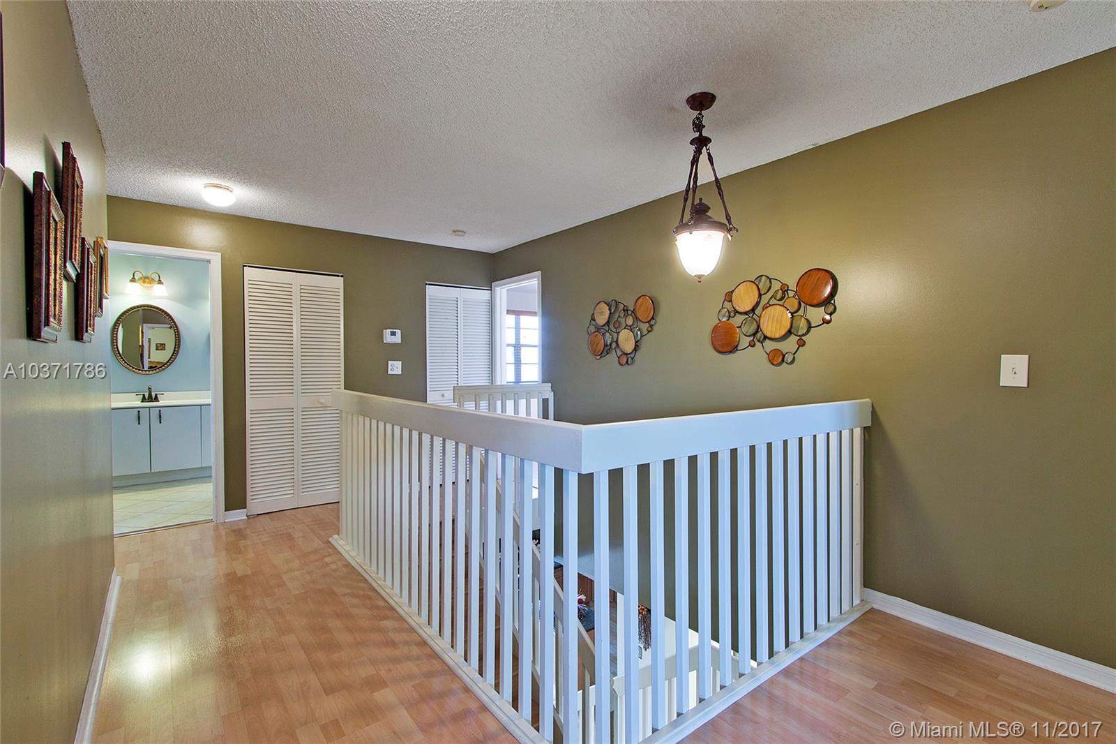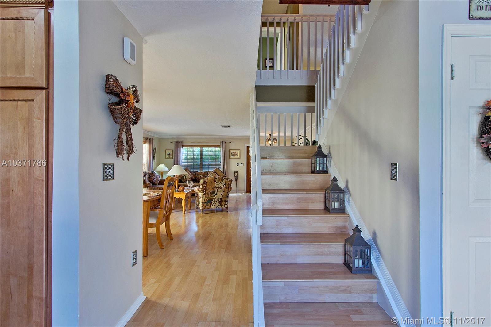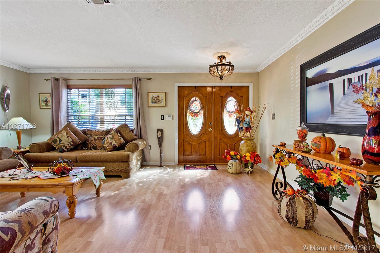 Wow! Stunning 5 Bed /2.5 Bath Single Family Home with 2 Car Garage Located Just North Of Miami Lakes. Beautiful Custom Kitchen with Island, Wood Cabinets, Granite Countertops and Stainless Steel Appliances. Large Open Floor Plan with Living, Dining, and Family Room that exits Through French Doors to Beautifully landscaped Fenced Back Yard Oasis. Master Suite Boasts Dual Custom Closets, New Bathroom w/Double Sinks, Travertine Tile, Roman Tub and Frameless Shower Enclosure. Newer A/C w/Warranty, Lots of Storage, Updated Bathrooms, Crown Molding, Wood Blinds, Laminate Floors, Accordion Shutters on All Openings and Shutters for Front Door. Indoor Laundry Room with Front loading Washer /Dryer. Overhead Storage in Garage. This 2 Story home is Largest Floor Plan in Development. Must See!