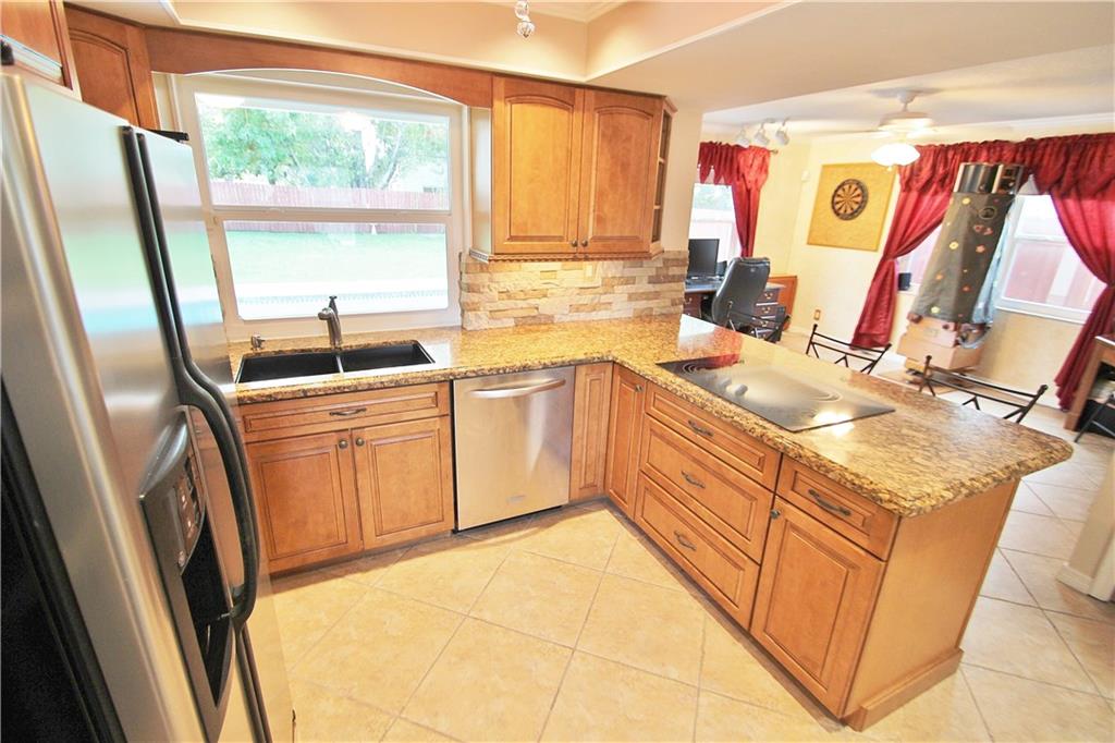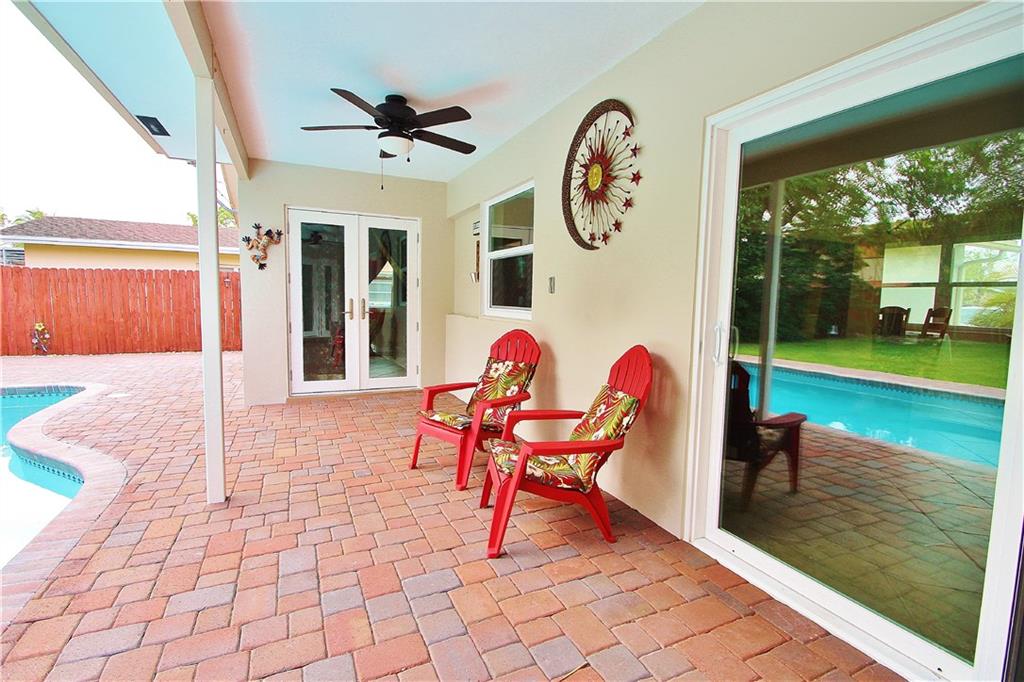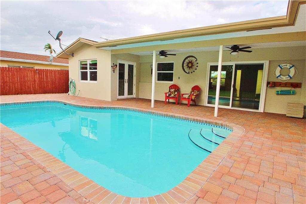 Wow what a rare opportunity to get an awesome "Home" on a Huge, Over Sized Lot in a great location!!. Lovely Open concept Kitchen with Wood Cabinets, Granite Counters & Window onto the Pool/Garden. 30k on Impact Windows, Huge 10,000+ Sq Ft Fenced, Lot, Huge pool with lots of paver area and a large Tiki Hut, Nice Laundry Room, 2yrs on H2O Heater/1 Car Garage/Crown Molding/Gutters/Sprinkler System/Great Roof. Living Room Sliding Doors flow out onto covered Porch Area...